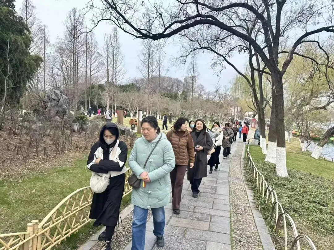 活动当天,莫愁湖畔春意正浓,海棠花初绽娇颜,湖水波光潋滟。上午9时,女职工们精神饱满,齐聚公园入口,在轻松愉悦的氛围中,正式开启环湖健步走活动。大家沿着环湖步道健步前行,意气风发,一路饱览湖光春色,看新柳吐绿、繁花含苞,在移步换景中舒展身心。途中,大家三两结伴、欢声笑语,畅谈工作心得与生活点滴,在互动交流中增进情谊、凝聚合力,充分展现出积极向上、团结奋进的精神风貌。