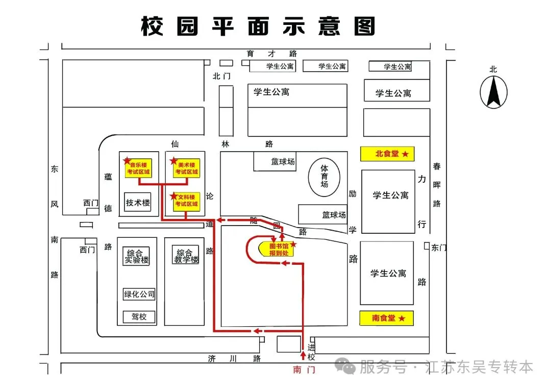 1.考生报到当天凭本人身份证和学生证(或学校证明)进校,考试当天凭准考证进校,考生一律从学校南门(济川东路96号)进校,并配合接受入校检查。送考车辆不得进入校园,请考生务必提前安排好行程,以免耽误考试。