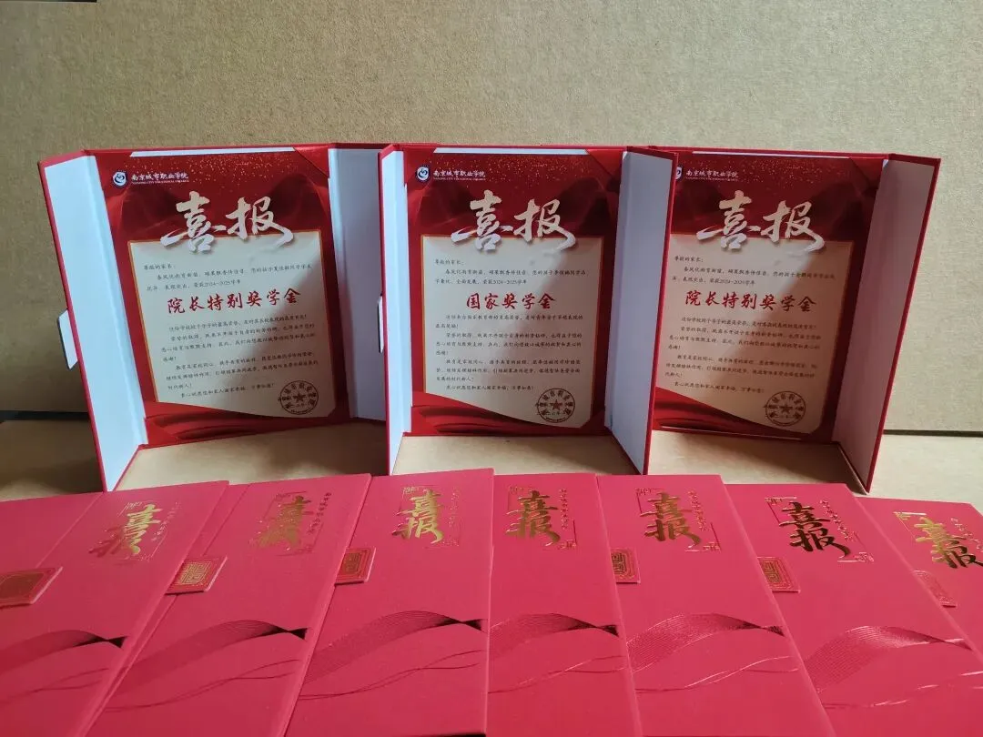 喜报载喜传佳绩,家校携手育良才。为充分发挥榜样示范引领作用,构建家校协同育人新格局,汇聚资助育人的强大合力,南京城市职业学院开展奖学金喜报寄送活动,将精心制作、载满荣誉的喜报作为特殊新年礼物,向荣获国家奖学金和院长特别奖学金的34名获奖学生家庭逐一报喜。