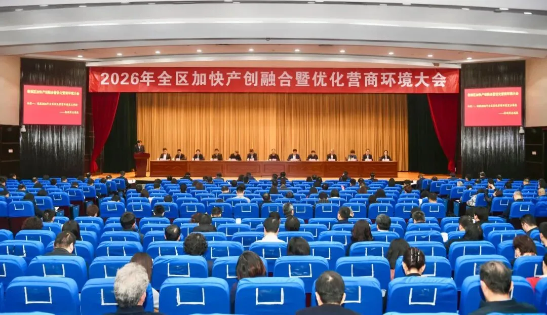 两天后,正月初九,全区加快产创融合暨优化营商环境大会召开。这是年后第一场全区性大会,主题直指“产创融合”与“营商环境”两个关键词。一系列优化营商环境的政策干货满满,一项项诚意十足的承诺掷地有声。