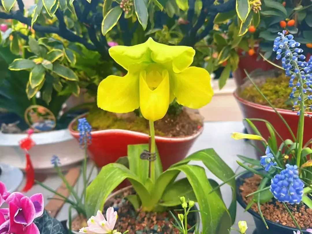 今年也不例外。那天我带着小福穿过清凉门,熟门熟路地拐进那条充满泥土芬芳的小径。市场里人声鼎沸,红色的灯笼挂满了棚顶,映得满园绿植更是生机勃勃。我们的目标很明确:一盆年宵花。