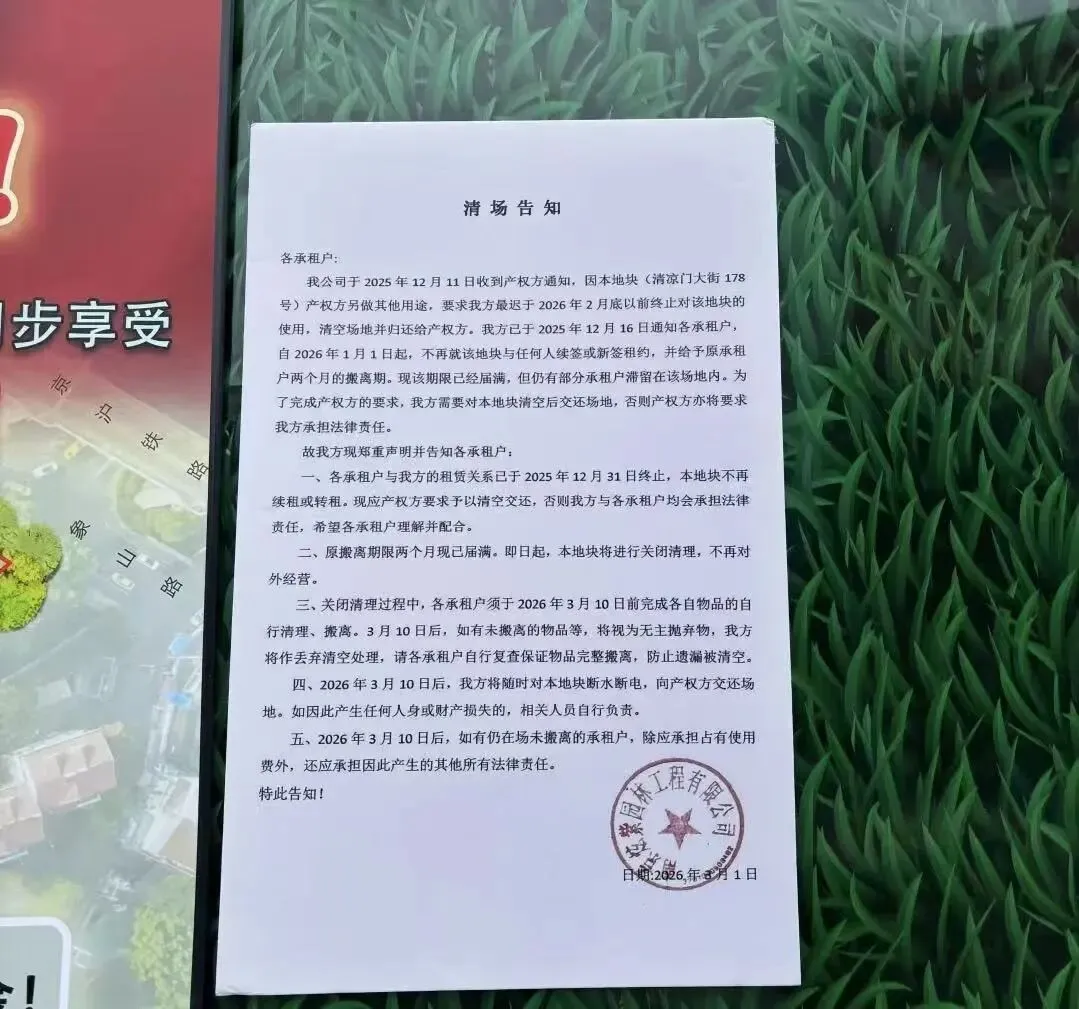 那是一张搬迁清场告知。