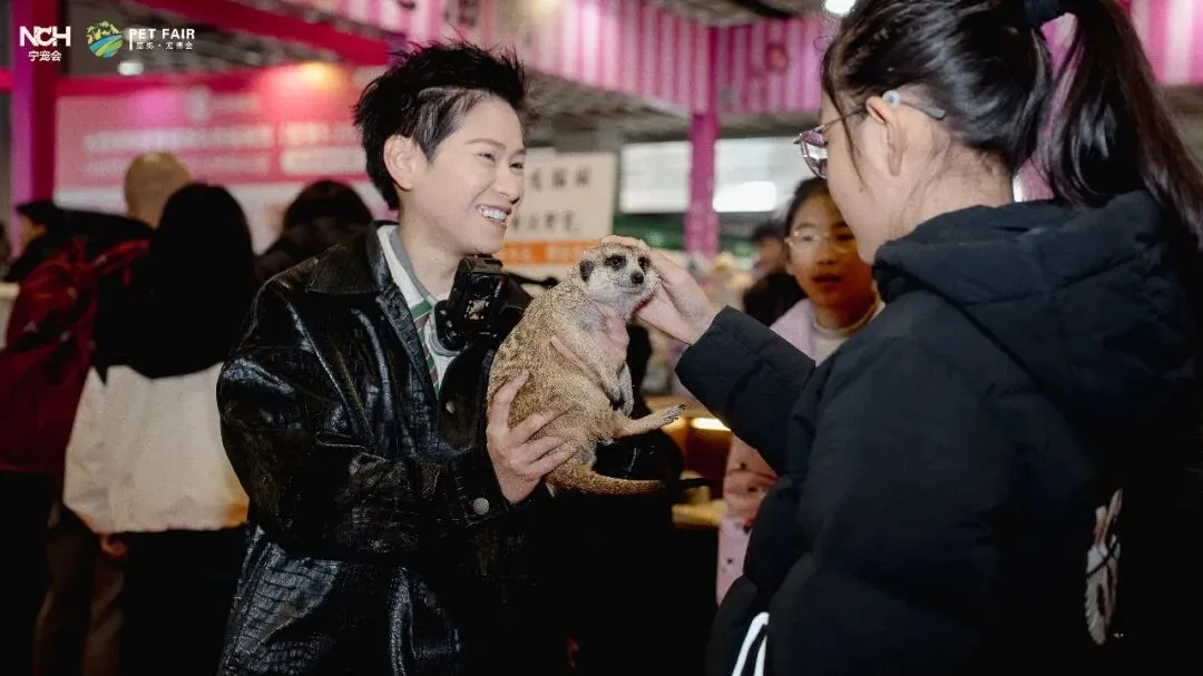 全网累计粉丝超百万的宠物领域头部博主 “夜来香阿刁” 亲临现场,带来超人气互动环节!作为深耕萌宠赛道的创作者,阿刁不仅分享了自己与狐獴、臭鼬等奇宠的相处趣事,还现场指导观众与萌宠安全互动的小技巧,更设置了签名合影、趣味问答等福利环节,互动区前排起长队,快门声与欢呼声不断,成为展会最具人气的打卡点之一,为现场增添了十足的网感与欢乐氛围。