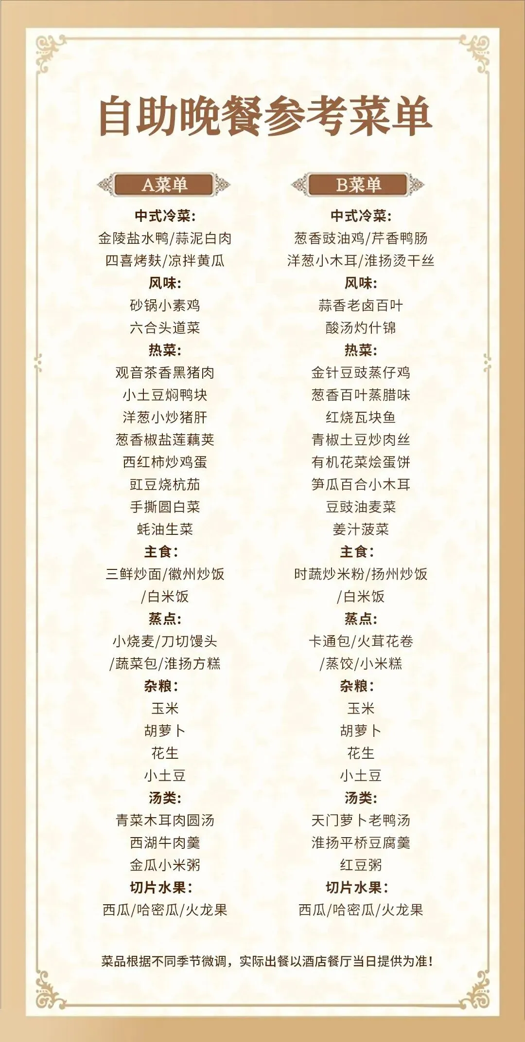 5.菜品以实际到店为准,严禁带熟食进入餐厅,严禁携带宠物进入酒店;