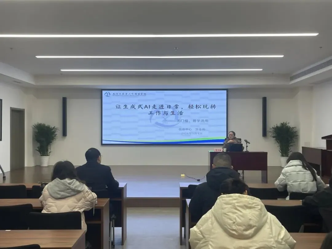 为提升全体教职工的数字化素养,探索人工智能技术在教育教学与日常工作中的创新应用,新学期伊始,我校特别邀请南京育英二外本部贺冬梅主任组织开展了一场主题为“让生成式AI走进日常,轻松玩转生活与工作”的专题培训活动。全校教职工积极参与,共同开启了一场探索AI奥秘的学习之旅。