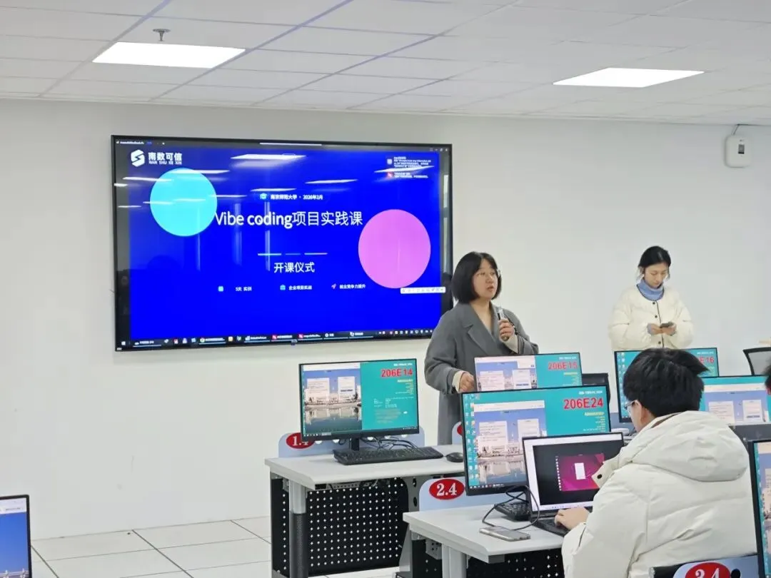 3月9日,南京师范大学计算机与电子信息学院与南数集团旗下AI教育业务创新引领者——南数可信数据技术(南京)有限公司,联合开设的2026年春季学期毕业实践课——《AI辅助编程实战课程》在仙林校区正式开课。