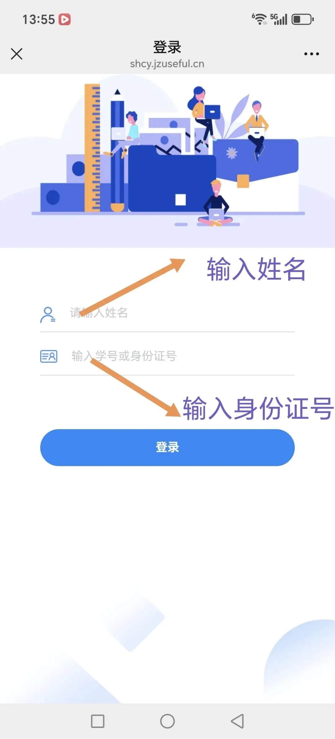 三 、在对话框中输入姓名和身份证号码,点击“登录”。