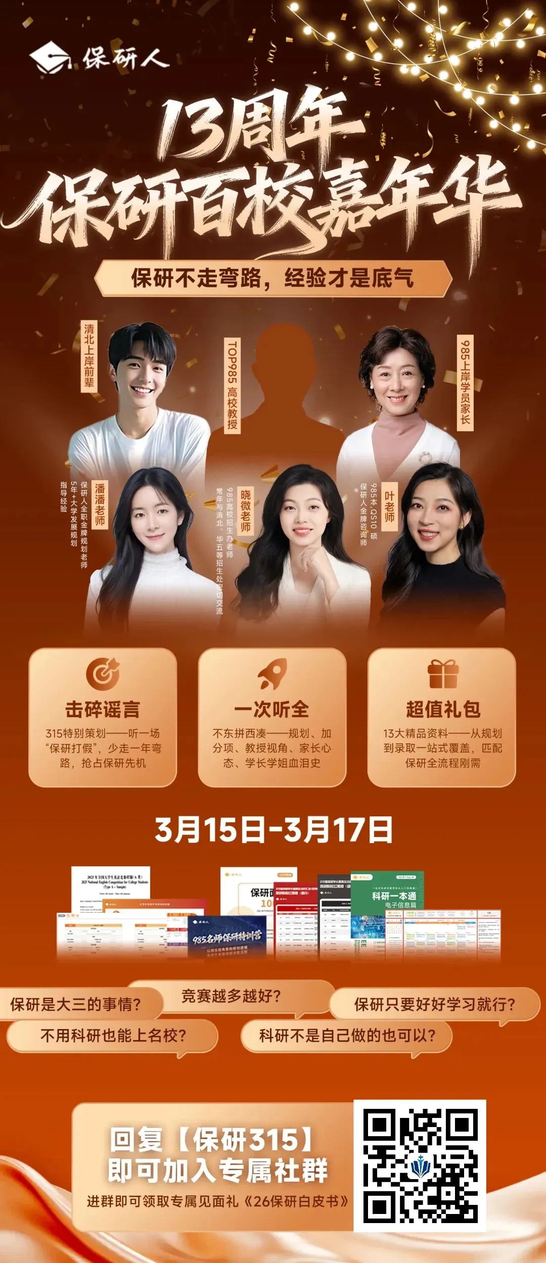 为了帮助23、24、25级保研er应对未来保研升学过程中可能会面临的挑战,保研人13周年保研百校嘉年华重磅来袭——