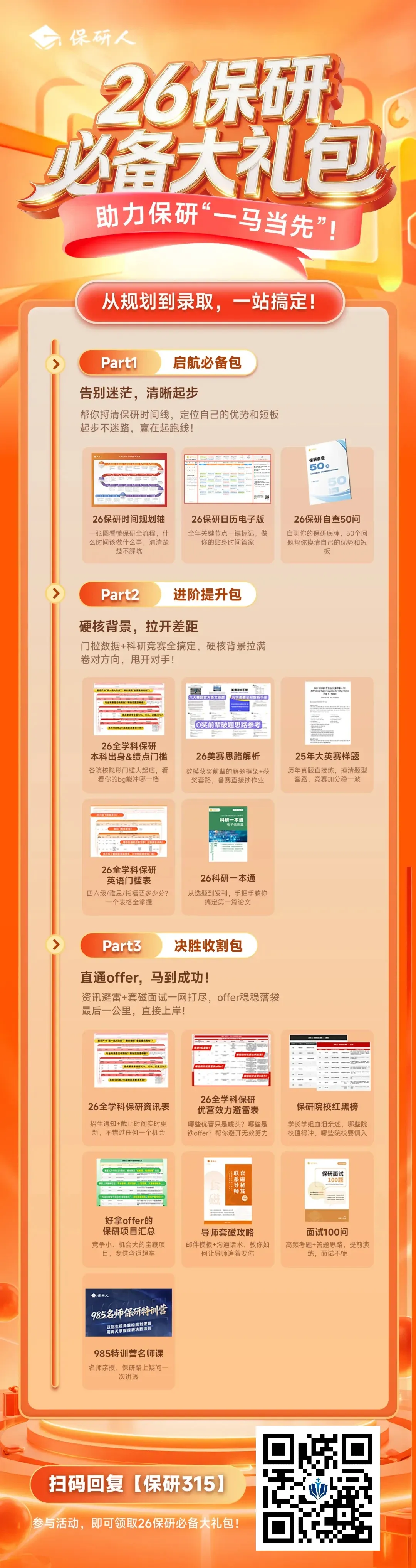 这一次,资料全面升级为26保研专属【三级进阶资料包】,从起步准备,到背景提升,再到最终冲刺,一站配齐!
