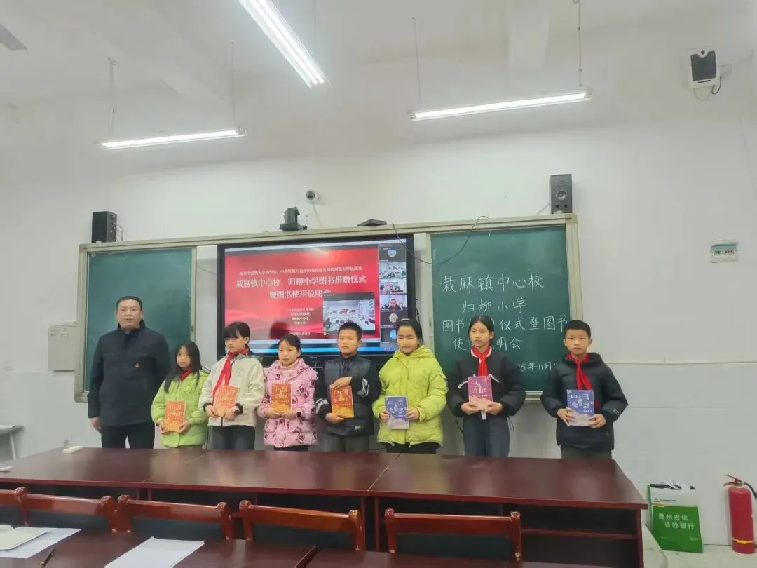11月18日,南京中医药大学药学院中药资源与化学研究生党支部联合河海大学出版社,与榕江县栽麻镇中心校、归柳小学共同举行图书捐赠线上仪式暨图书使用说明会,栽麻分队全程参与、全力协助。我们提前清点捐赠图书、对接双方需求,线上协助完成仪式流程,详细为同学们讲解图书分类及使用方法,让每一本爱心图书都能发挥最大价值,为孩子们打开通往广阔世界的大门。