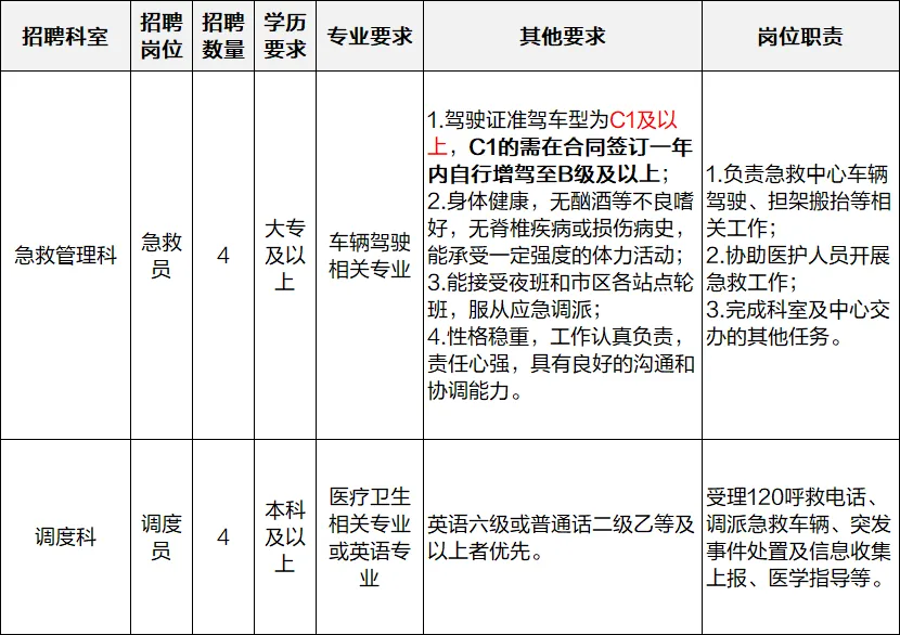 因急救业务工作发展需要,进一步提升院前医疗急救服务能力和水平,南京市急救中心招聘8名编外员额制人员如下: