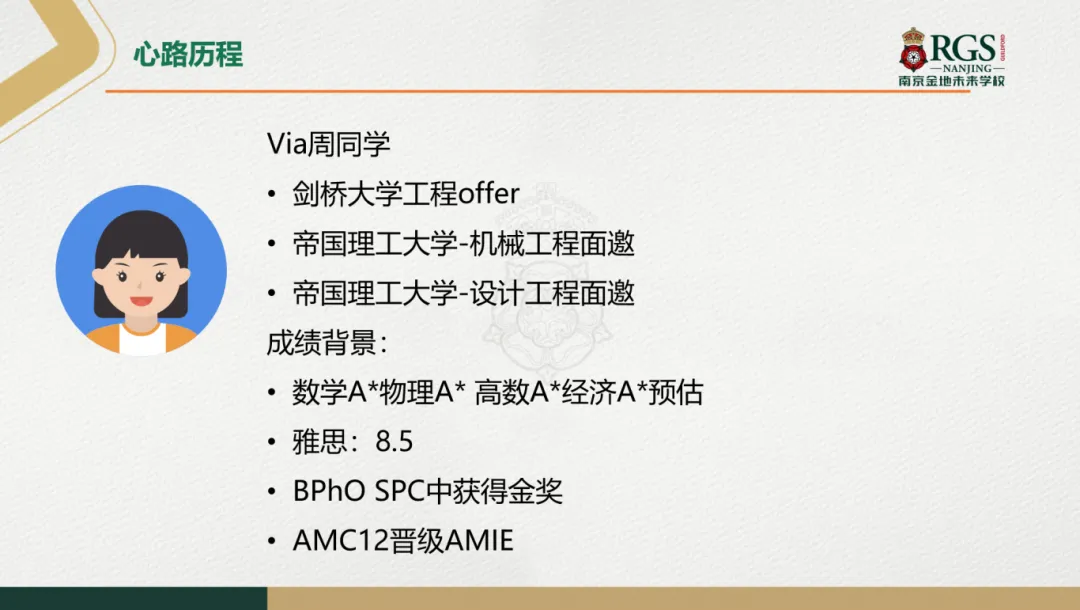 就在今年1月,南京金地未来学校的Via同学成功斩获剑桥大学工程专业正式offer。