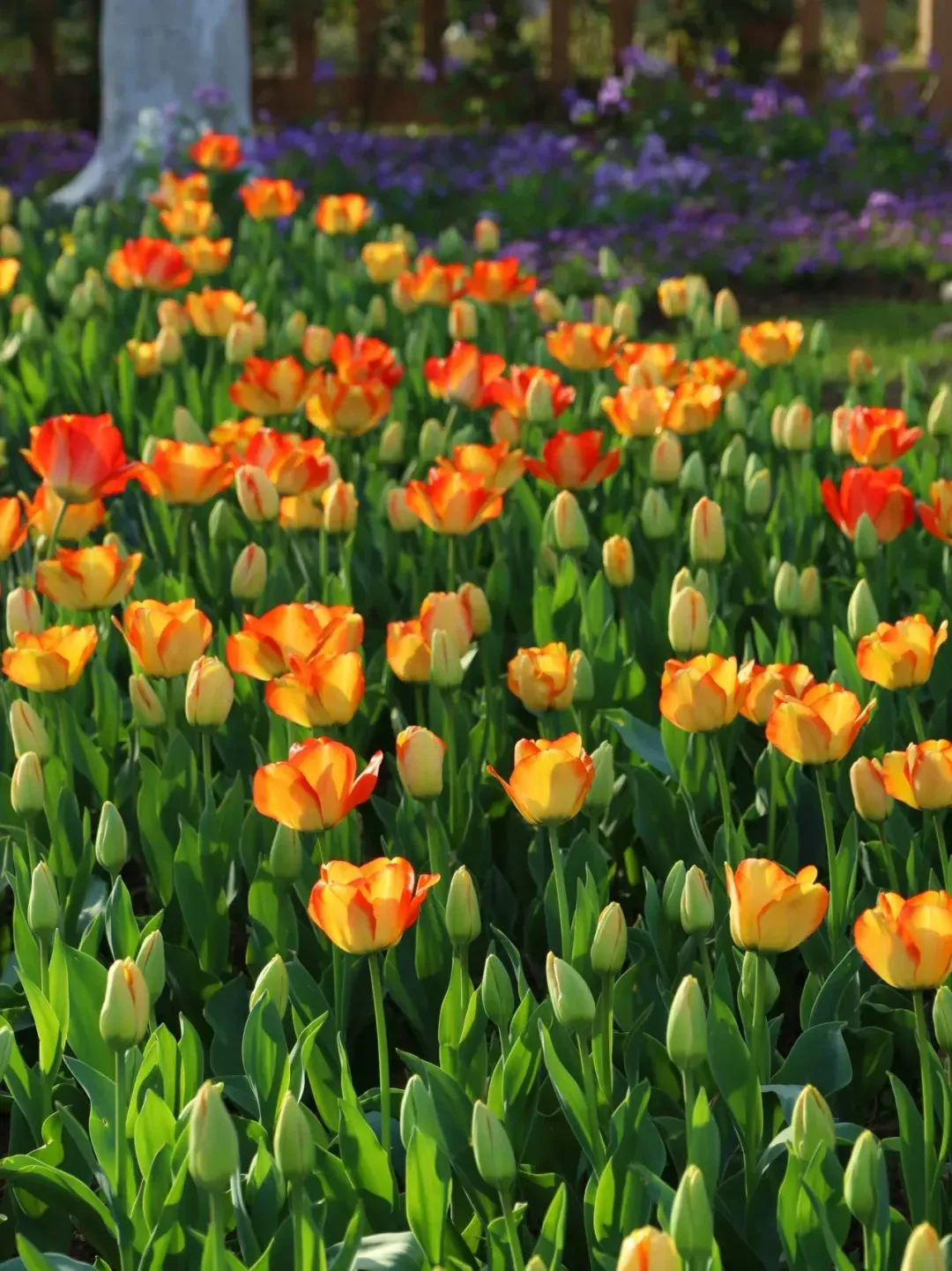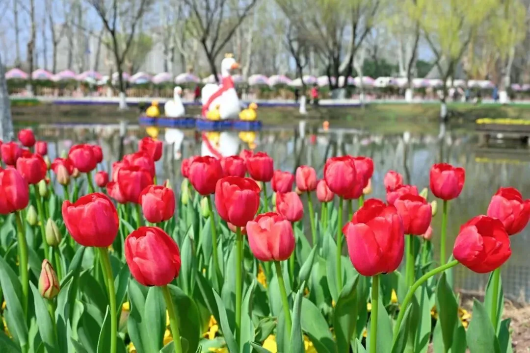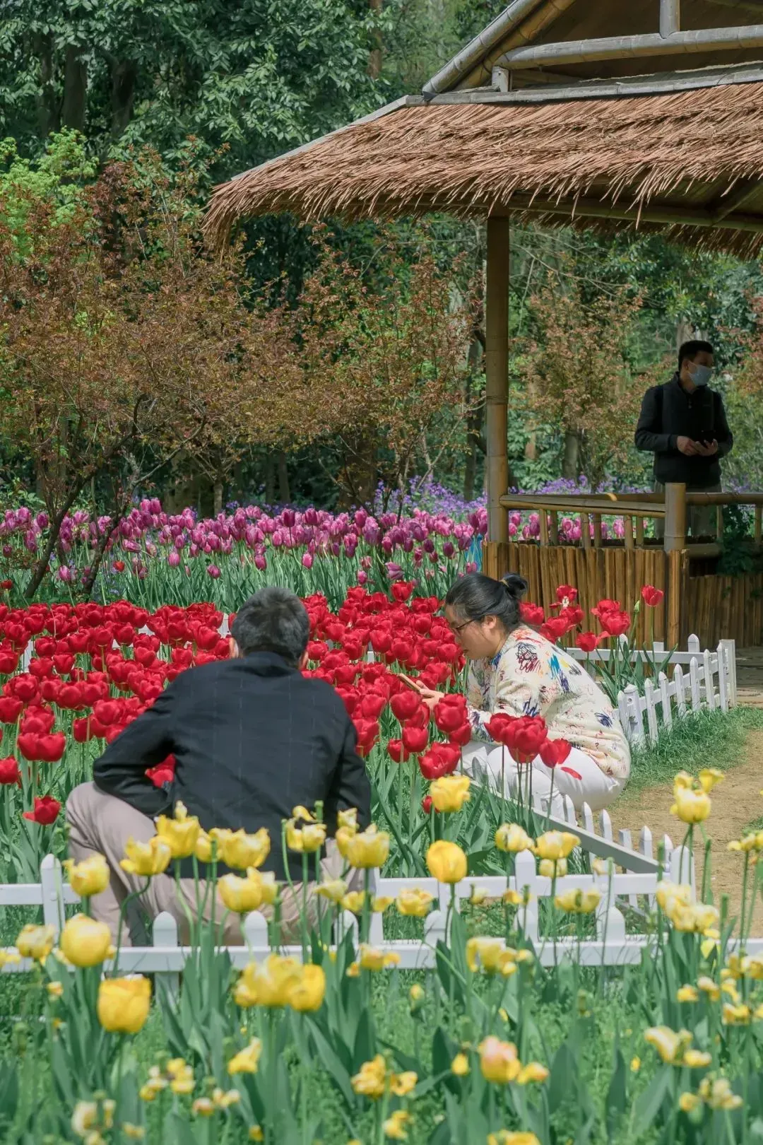 作为中国第一座国立植物园,中山植物园珍藏着腊叶标本70余万份,植物园保存植物3000种以上,是座名副其实的“花花世界”。3月中旬至4月中旬,正是园内郁金香娇艳的好时机,成片的郁金香迎风招展,见过郁金香「发光」的人,才懂得起风的浪漫。春风十里,不如花海一片!每年三月,玄武湖公园便化身为一座巨大的“春日花园”,美得让人挪不开眼!眼下,玄武湖公园里的情侣园更是因郁金香的盛开,成为了园内热门打卡地。情侣园花卉大道的郁金香,是春天最热烈的色彩。红色、黄色、粉色、紫色……一朵朵郁金香整齐地排列在花田中,宛如一幅巨大的油画。阳光洒下,花瓣上的露珠闪烁着微光,仿佛每一朵花都在向你诉说着春天的故事。说起玄武湖郁金香的最佳观赏区域,情侣园花卉大道、访花蝶径等区域,都早已是大家熟知的观赏点。而除这两个地方外,在玄武门翠虹堤区域也有一片“低调”的郁金香打卡点。此区域的郁金香不仅可以与紫峰大厦、明城墙同框,更是可以泛舟湖上,开启一场水上赏花之旅。