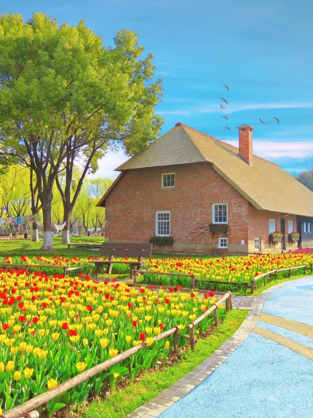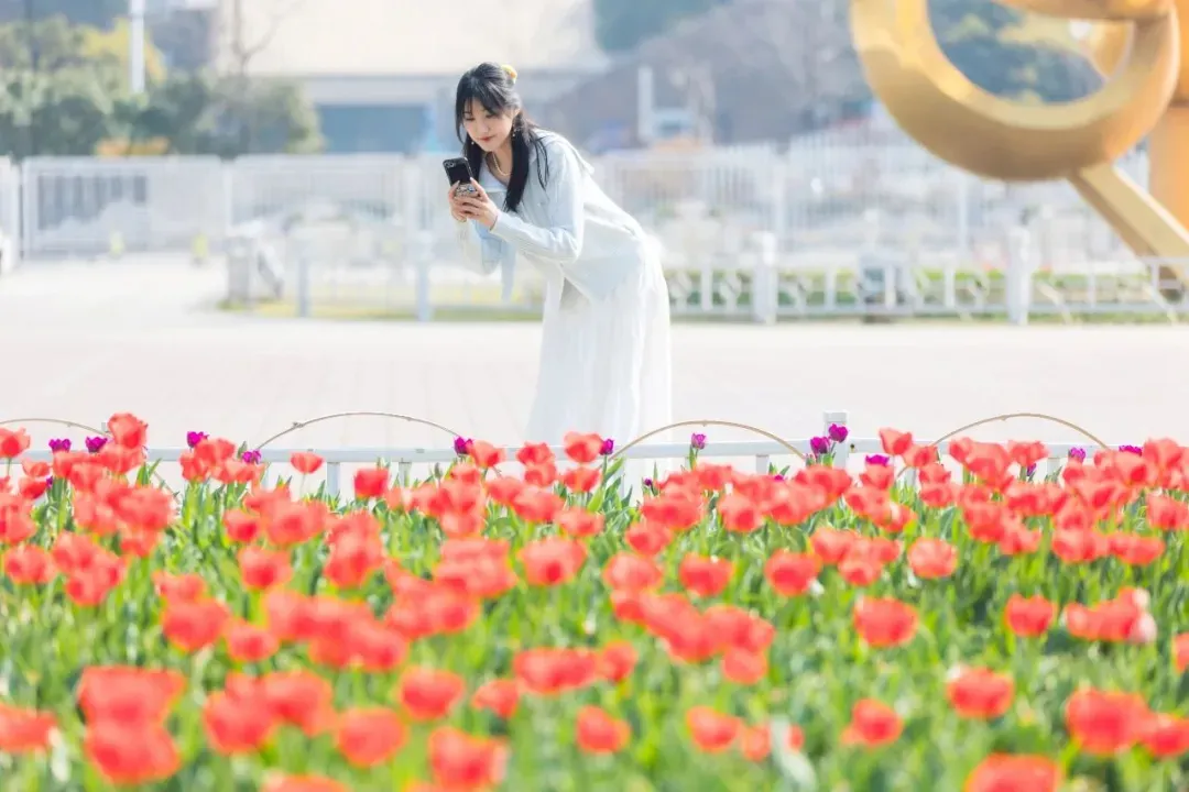 此外,滨江公园还打造了郁金香电影展、多巴胺光影打卡点、郁金香市集、萌宠乐园、流金音乐会等多重精彩互动体验项目和众多吸睛打卡点,等你来玩!美了美了!南京中山植物园的郁金香盛开啦!万株郁金香连绵成彩色花海和蓝天白云相映,十足浪漫。