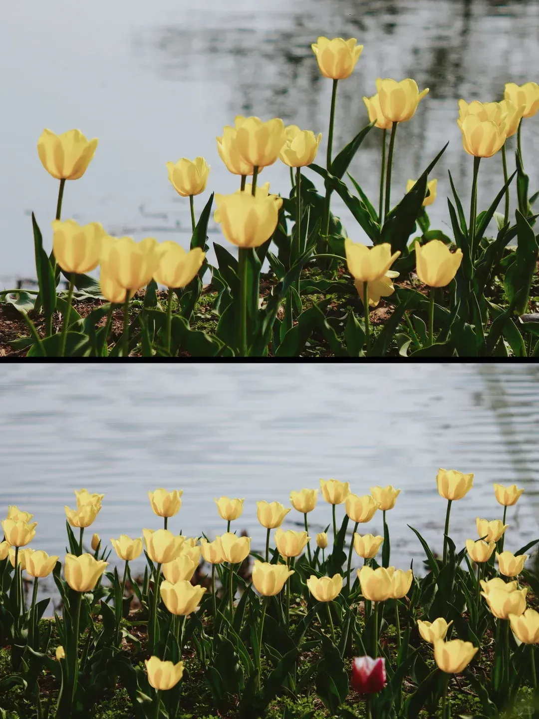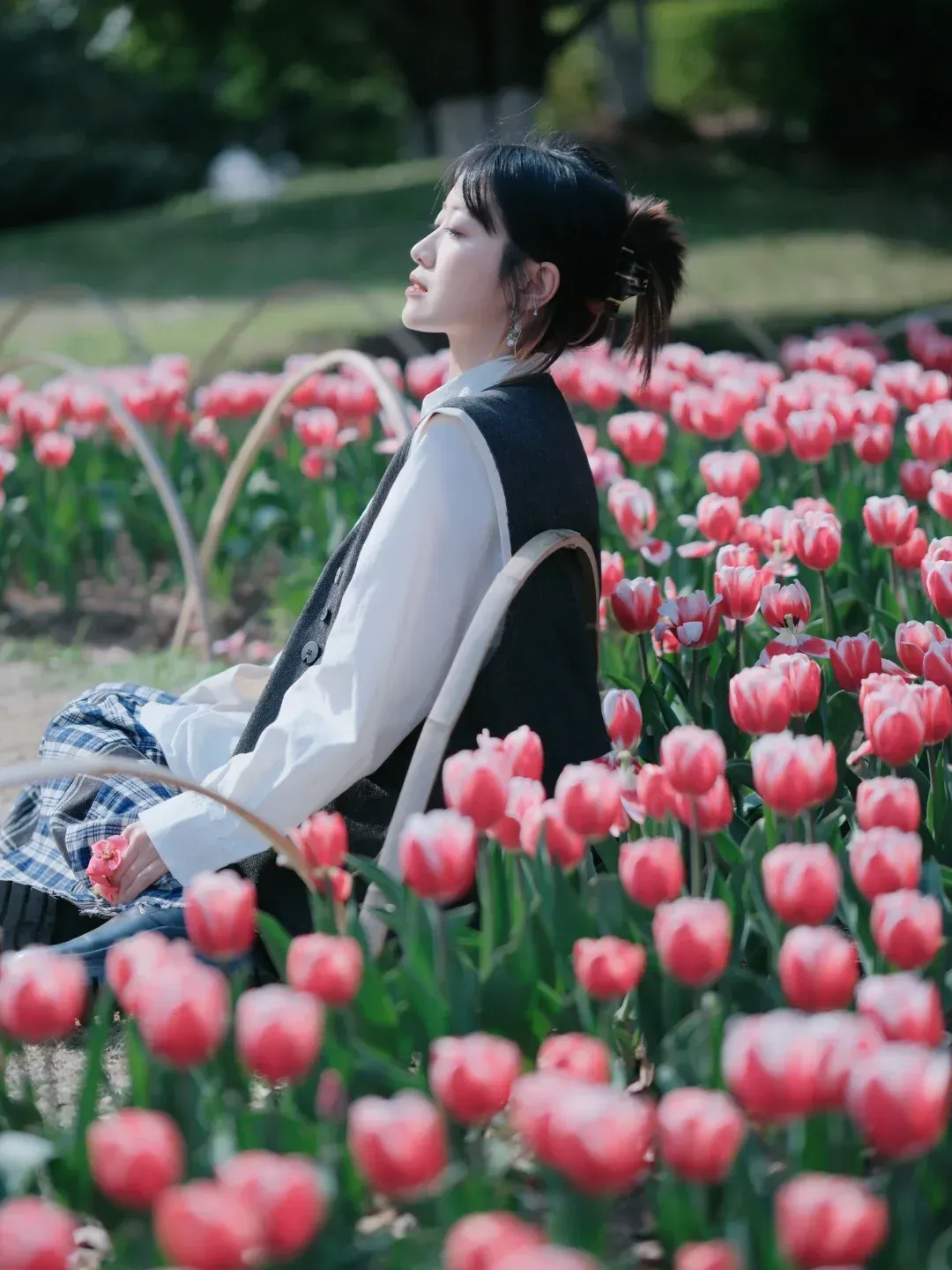 成片的郁金香在微风中轻轻摇曳,仿佛在跳一支优雅的春日圆舞曲。