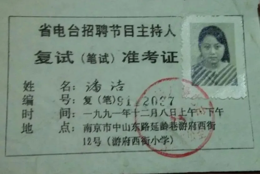 4.1991年,江苏省电台招聘节目主持人准考证。