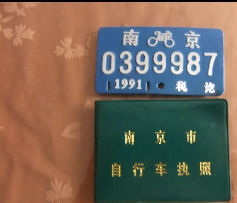 6.1991年,南京自行车牌照。