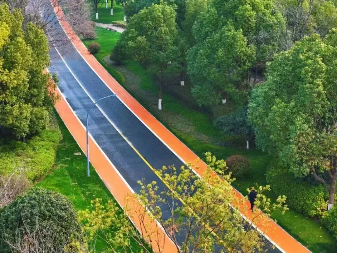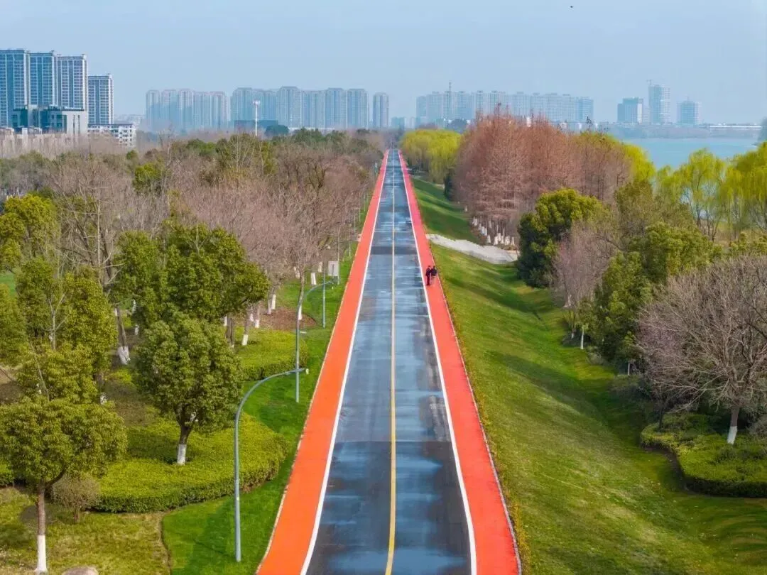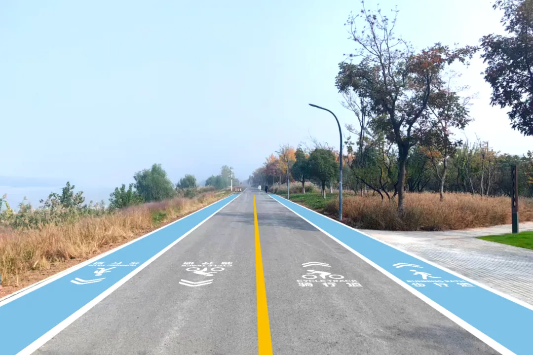 最近,环岛江堤路面完成了升级改造。改造后的道路宽度由原来的6米拓宽至8米,拓宽后的两侧为彩色步行道。