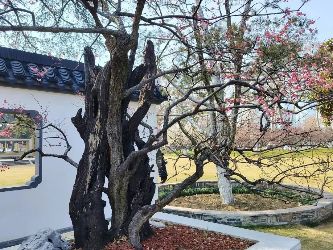 “古梅一树雪精神”,这株梅树至今已有600多年历史,是玄武湖的梅王。