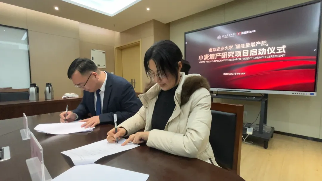 2026年3月9日下午,南京农业大学&“黑能量增产肥”小麦增产研究项目签约仪式在南京农业大学隆重举行。该项目旨在通过产学研深度融合,探索和挖掘“黑能量增产肥”在小麦增产背后的效果验证和机理研究,为我国粮食单产提升提供科技支撑。