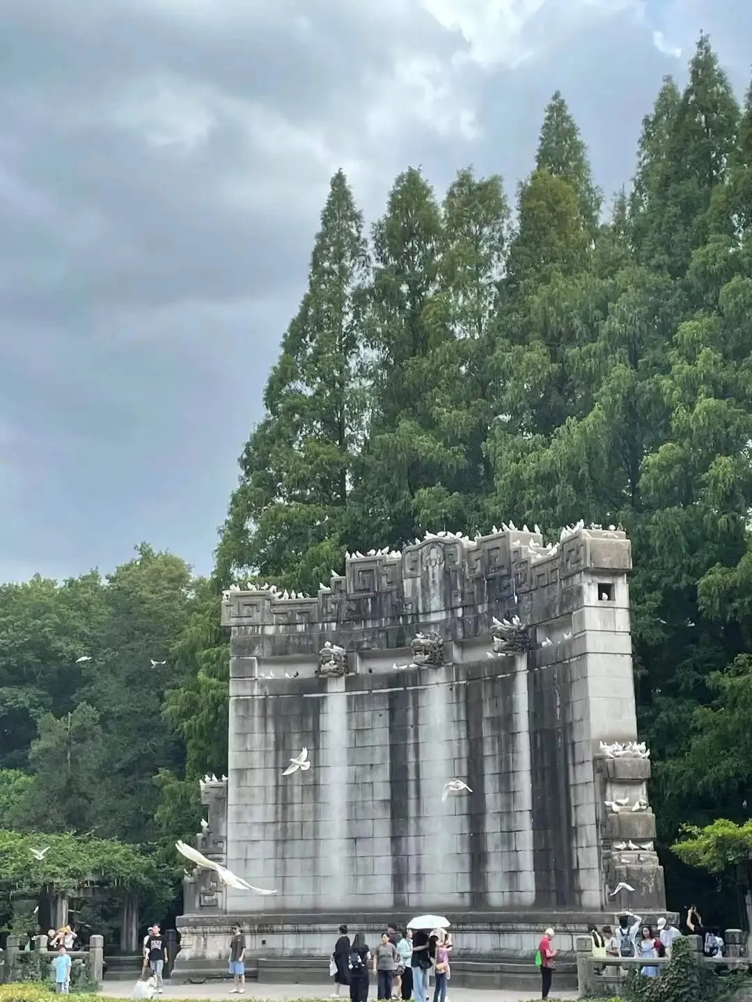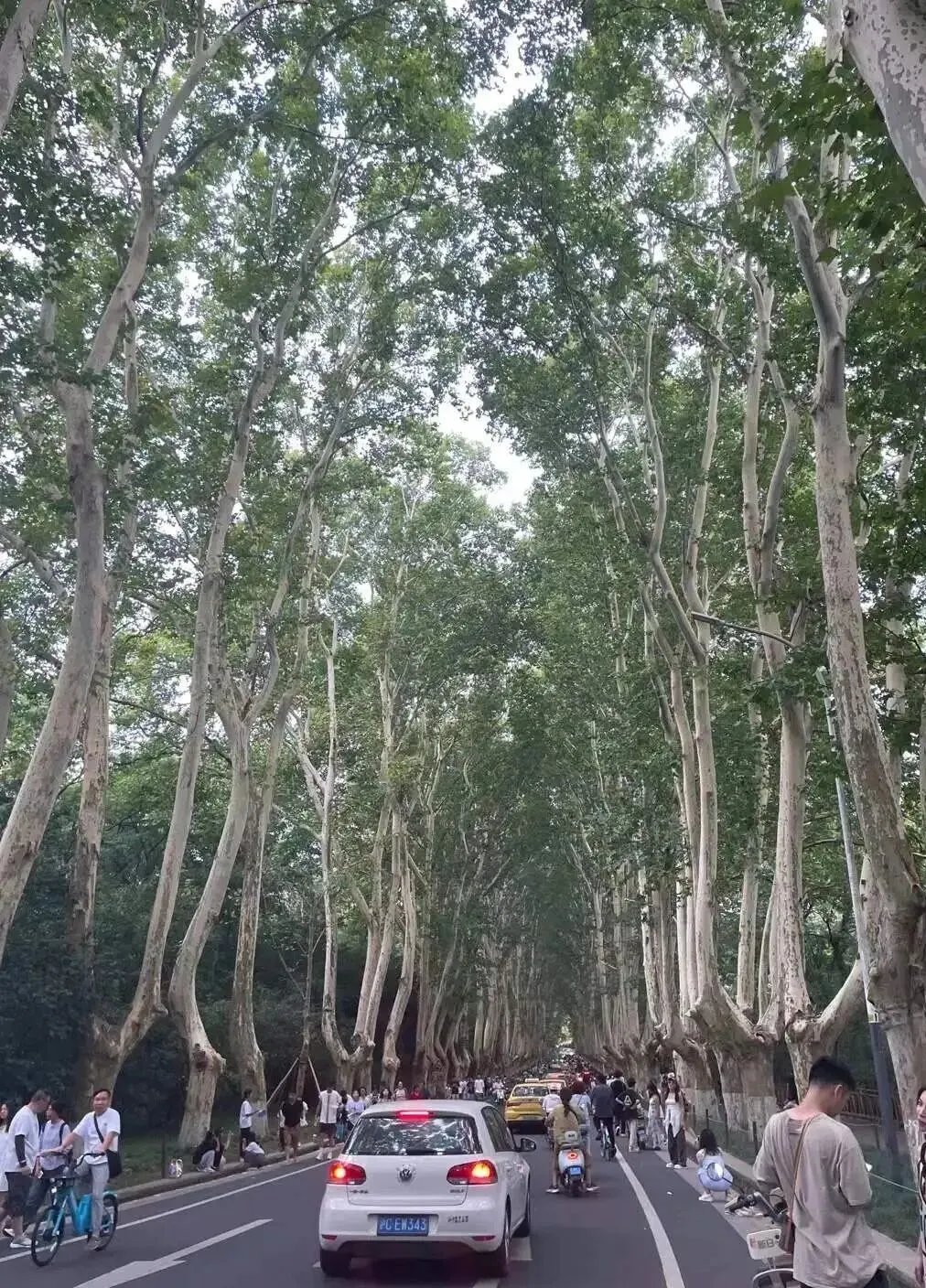 当年因为宋美龄喜欢梧桐,蒋介石便下令种满了整个南京城。如今这些树已经长得很高了,枝干交错,在头顶搭出一条条绿色的隧道。走在下面,热归热,心里却是静的。