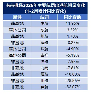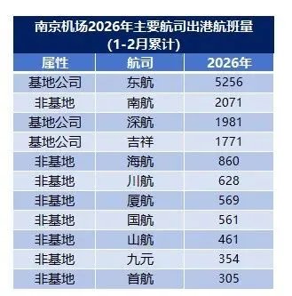 今年前两个月,南航出港航班量位居南京机场所有航司第二位,非基地航司第一位;而南航+厦航等南航系航司航班量也超过吉祥系航司航班量,但略低于国航系(深航+国航+山航等)航司航班量。