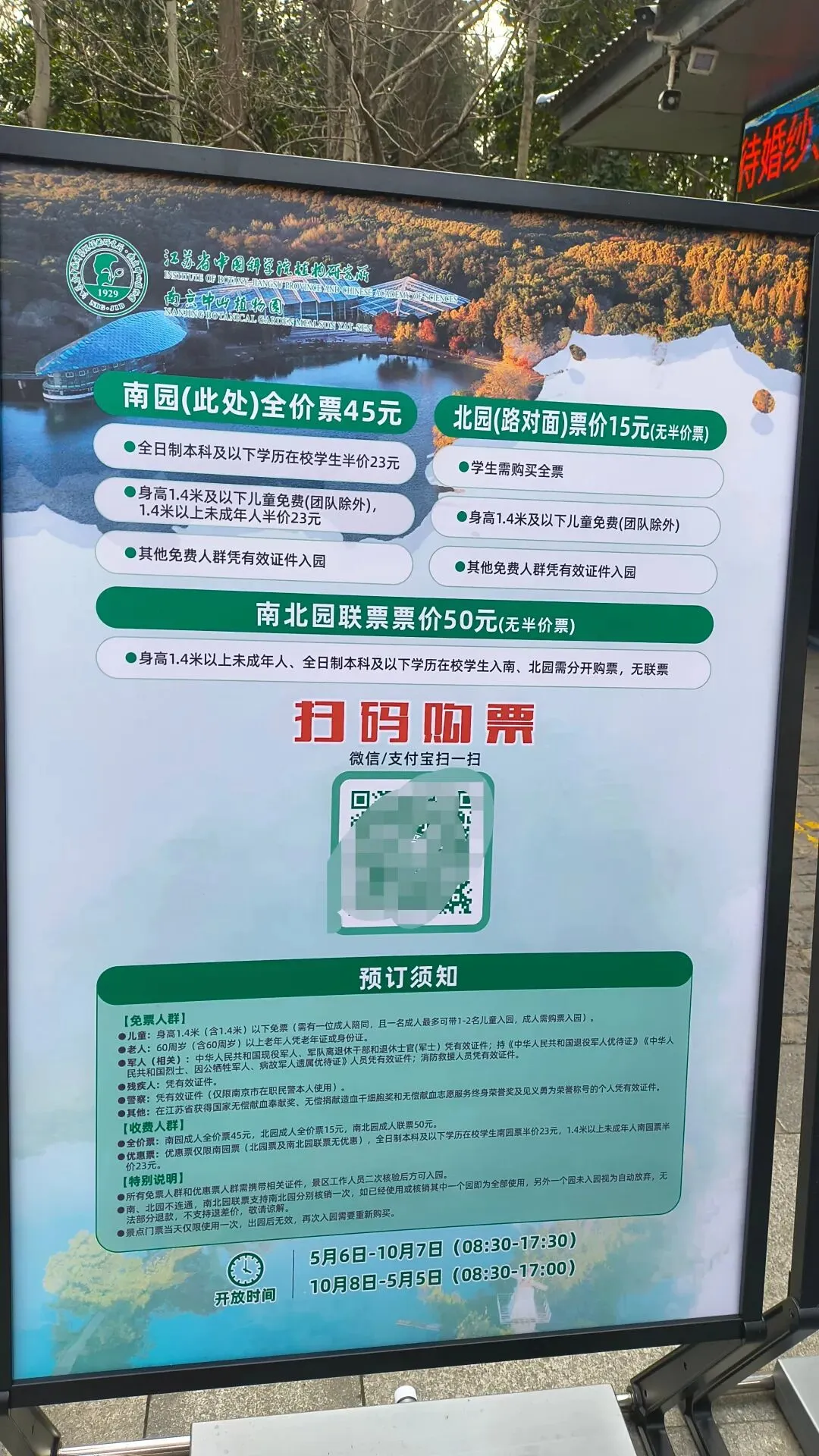 - 中山植物园北园:门票15元,1.4米以下儿童免票,无学生半价,南京游园卡包含。景区看点包括:早樱(目前接近尾声),植物系统分类园(华东地区植物“活标本”,290+种原生植物,按进化顺序排布),蔷薇园(4-5月顶流),红枫岗(秋日限定),盆景园(中式植物美学)。另外,北园还有深受孩子喜爱的桥世界,买了门票就可以体验,所以肤浅的我还是觉得北园门票性价比更高。