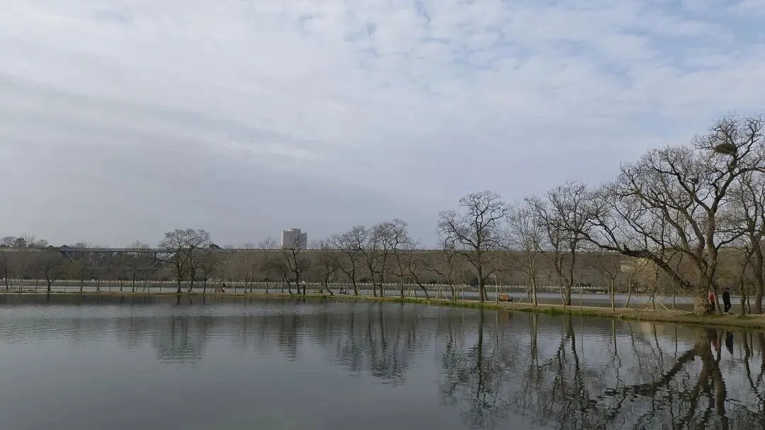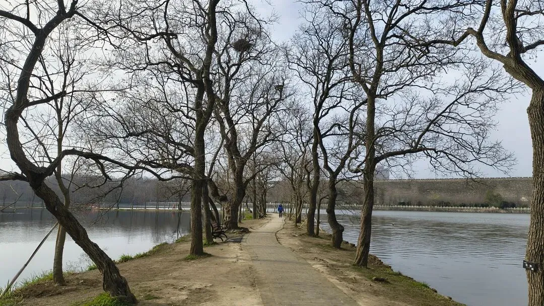 南园的月亮堤格外有韵味,小路两侧种满乌桕树,枝干舒展有型。脑补秋日红叶漫天时,这里一定是油画般的美景,值得秋天再来二刷。