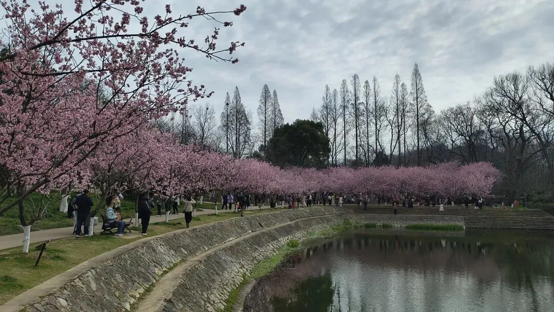 春节刚过,朋友圈就被植物园的早樱刷屏,那时总觉得有些不真实——年才刚过完,樱花怎会开得这般早?心里惦记了许久,却一拖再拖,终于在女神节这天起了个大早,赴这场迟到的春日之约。我从明孝陵5号门进,1号门出,顺势走进了中山植物园。