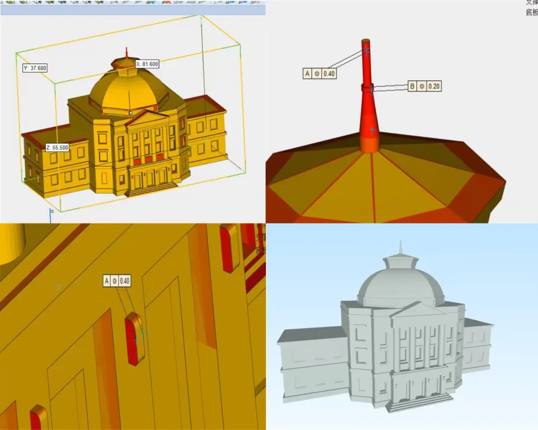 实践团队用多样化的形式,包括产出对省级非遗传承人的访谈记录、建模大礼堂并亲手粘贴金箔、制作探秘金箔小程序和新媒体宣传等方式来对这项古老的非遗技艺进行宣传、传承和保护,其中数字化相关的工作是我们工作最耀眼的部分。