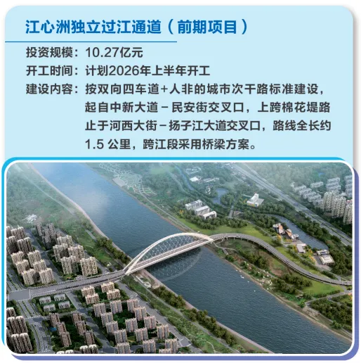 在这样的背景下,预计今年3月就将启动初步设计招标的江心洲中部夹江通道工程,毫无疑问成为整个片区发展的"定心丸"和板块价值的"压舱石"。
