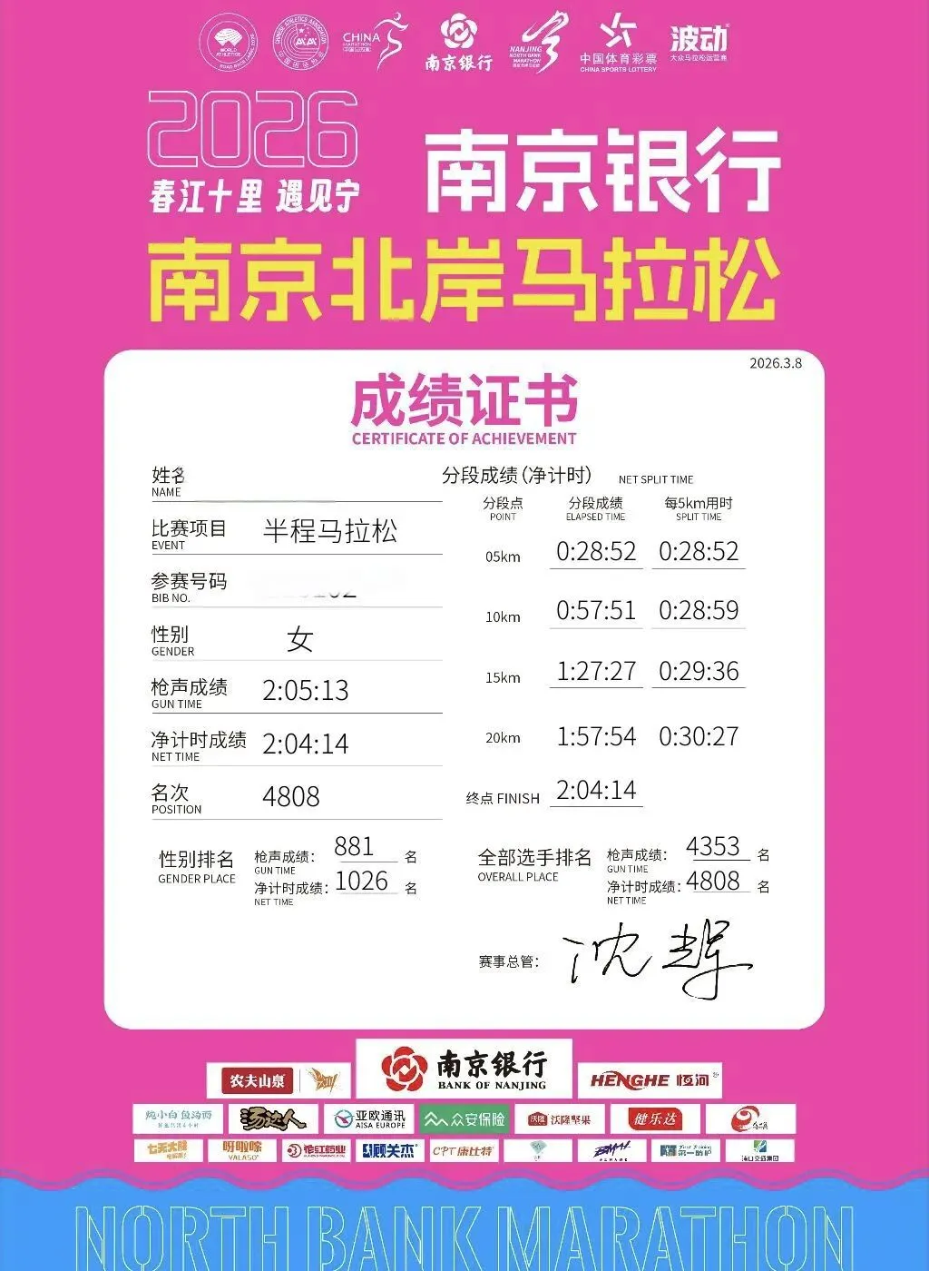 就在前天,3月8日,我迎来了2026年的第一场马拉松——南京北岸马拉松,也迎来了我跑步生涯里最大的惊喜:我居然PB了!这份惊喜,我最想感谢的,就是一路陪伴我的鹿姐姐。从开始跑马到现在,我们一起并肩跑完了6场赛事,每次去外地参赛,她都全程陪着我、鼓励我,是我赛道上最温暖的依靠。