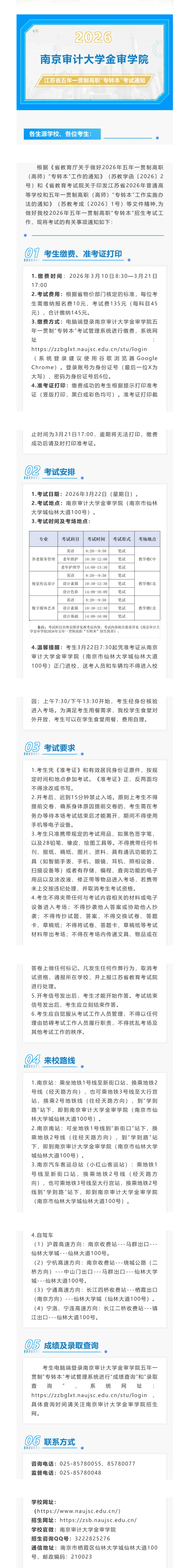 >南京审计大学金审学院2026年江苏省五年一贯制高职“专转本”考试通知