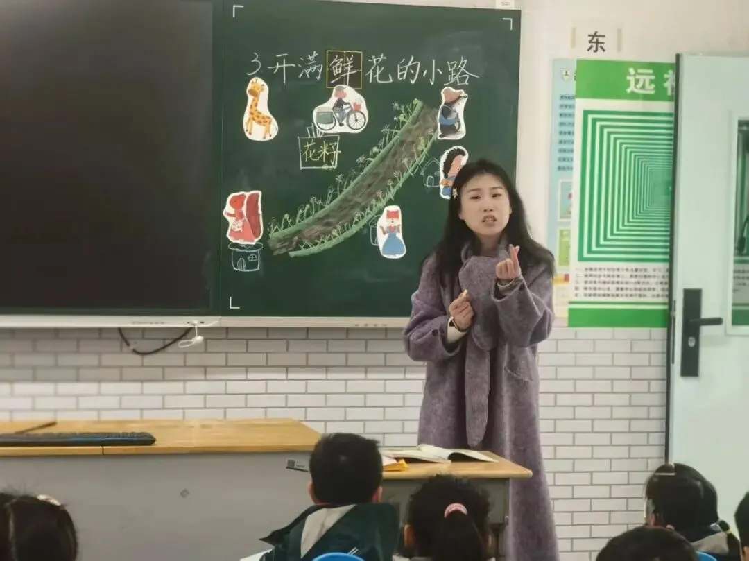 上午8:20,二(8)班正在上语文课,裴诗卉老师带着大家一起沉浸式学习《开满鲜花的小路》。