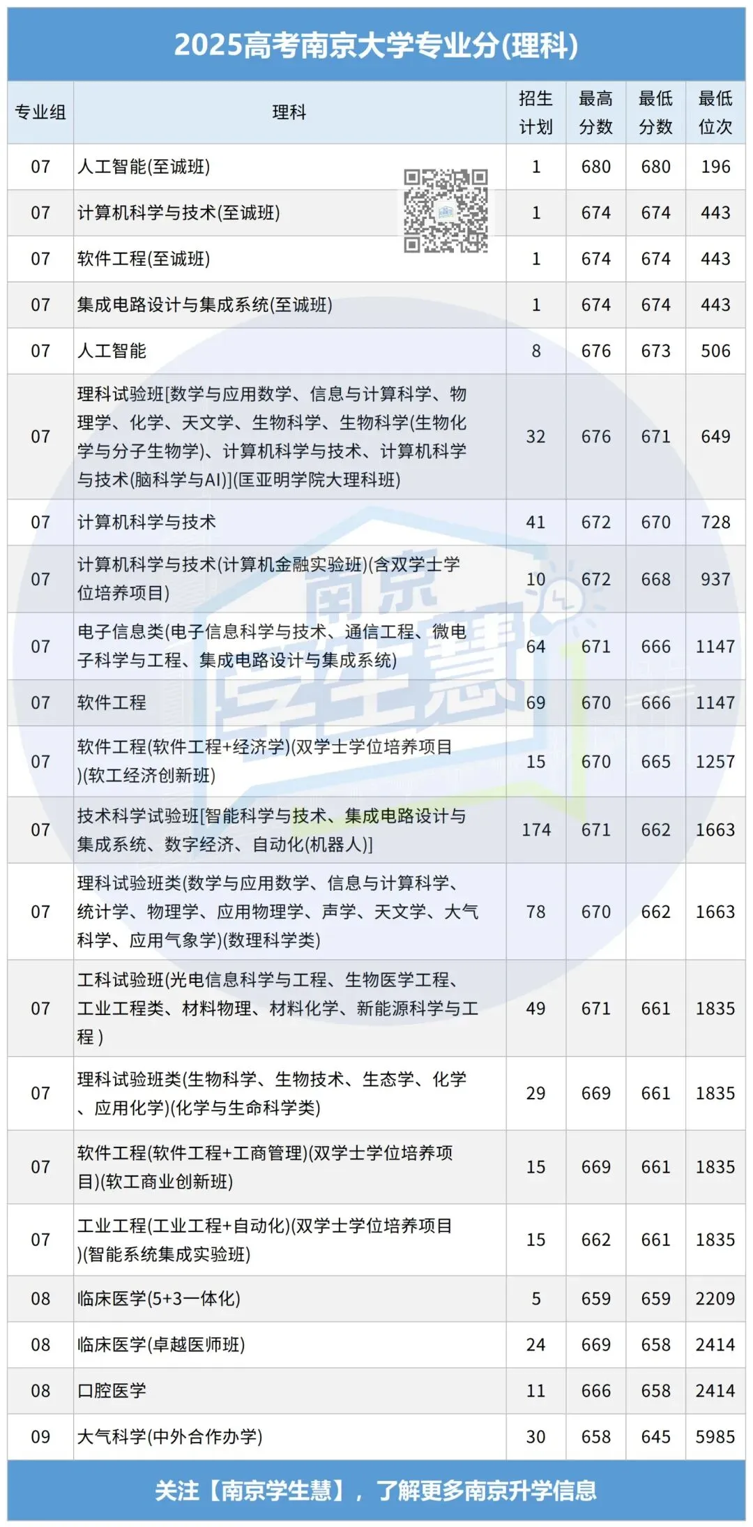 近日,南京大学2025专业录取分数线出炉,想要考上这所江苏TOP1高校,至少需要多少分?2025年南京各高中录取情况如何?一起来看一下~