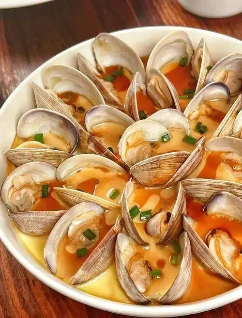 如果只点一道,我会选文蛤蒸蛋。做法不复杂:文蛤先吐沙,开水汆到微开口;鸡蛋打散加温水和少许盐,过筛后上锅蒸到半凝固,再铺上文蛤,淋一点猪油和葱花,焖两分钟。入口先是蛋的软,再是海水那股鲜,收得很干净。