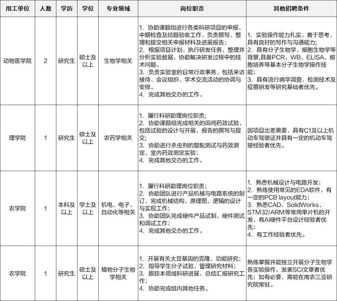 南京农业大学坐落于钟灵毓秀、虎踞龙蟠的古都南京,是一所以农业和生命科学为优势和特色,农、理、经、管、工、文、法学多学科协调发展的教育部直属全国重点大学,是国家“211工程”重点建设大学、“985优势学科创新平台”和“双一流”建设高校。经研究,现公开招聘科研助理5名。