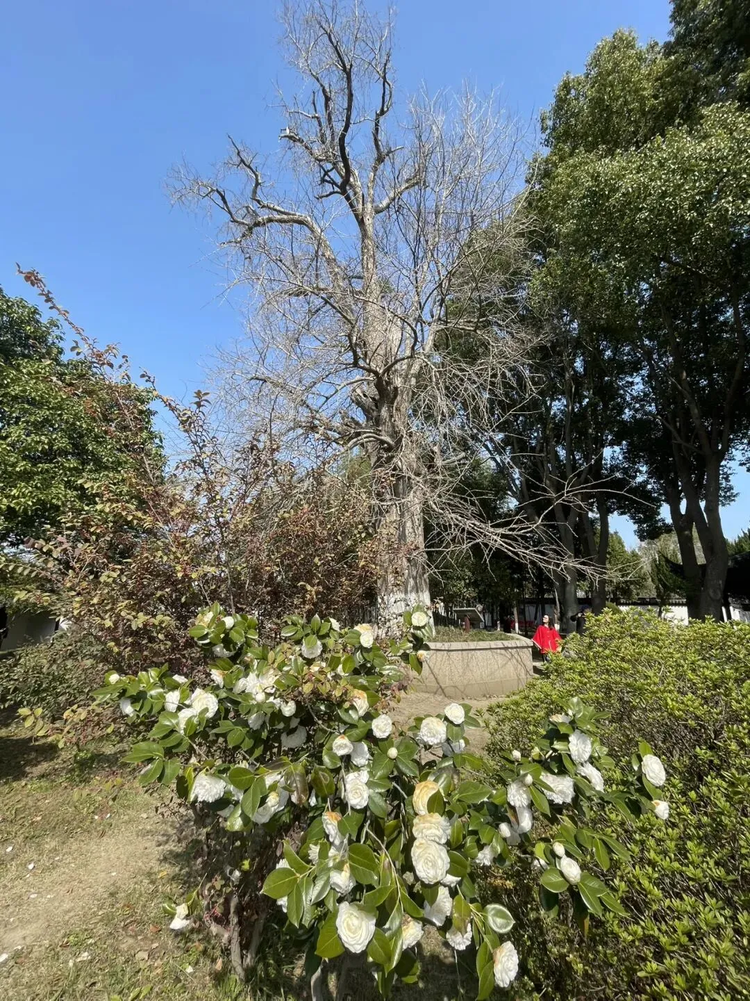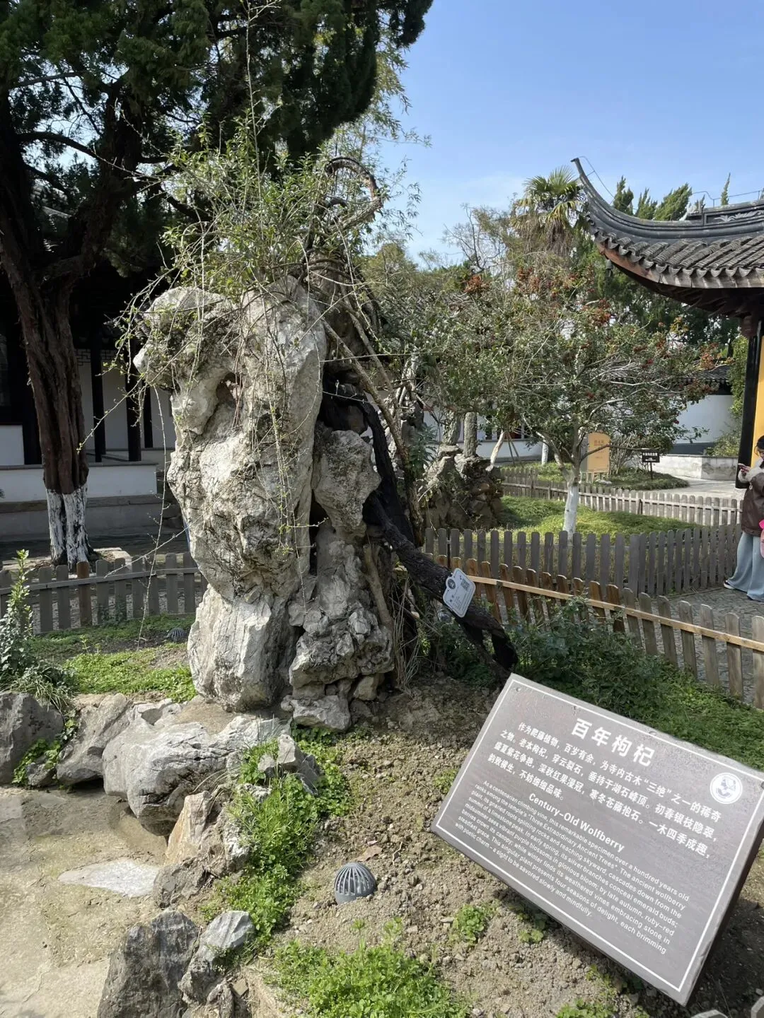 这座古刹非同一般,南梁、唐宋、明清,乃至当代文物古迹众多,可以按照我给出的线路顺序参观梁唐宋明清和民国十余处古迹。第一,百年枸杞。作为寺内“古木三绝”之一,穿石而生,与湖石融为一体且四季景观各不相同。