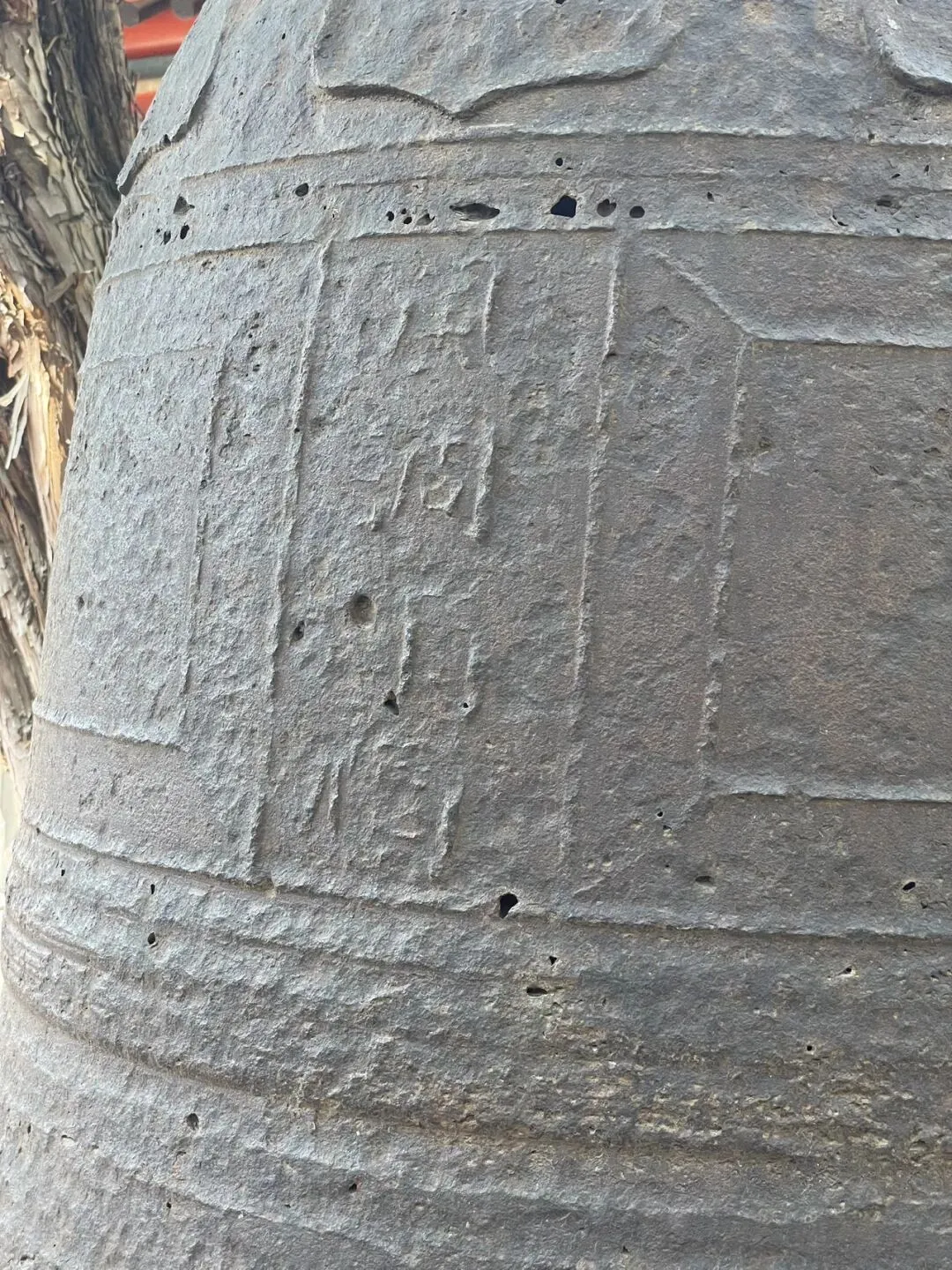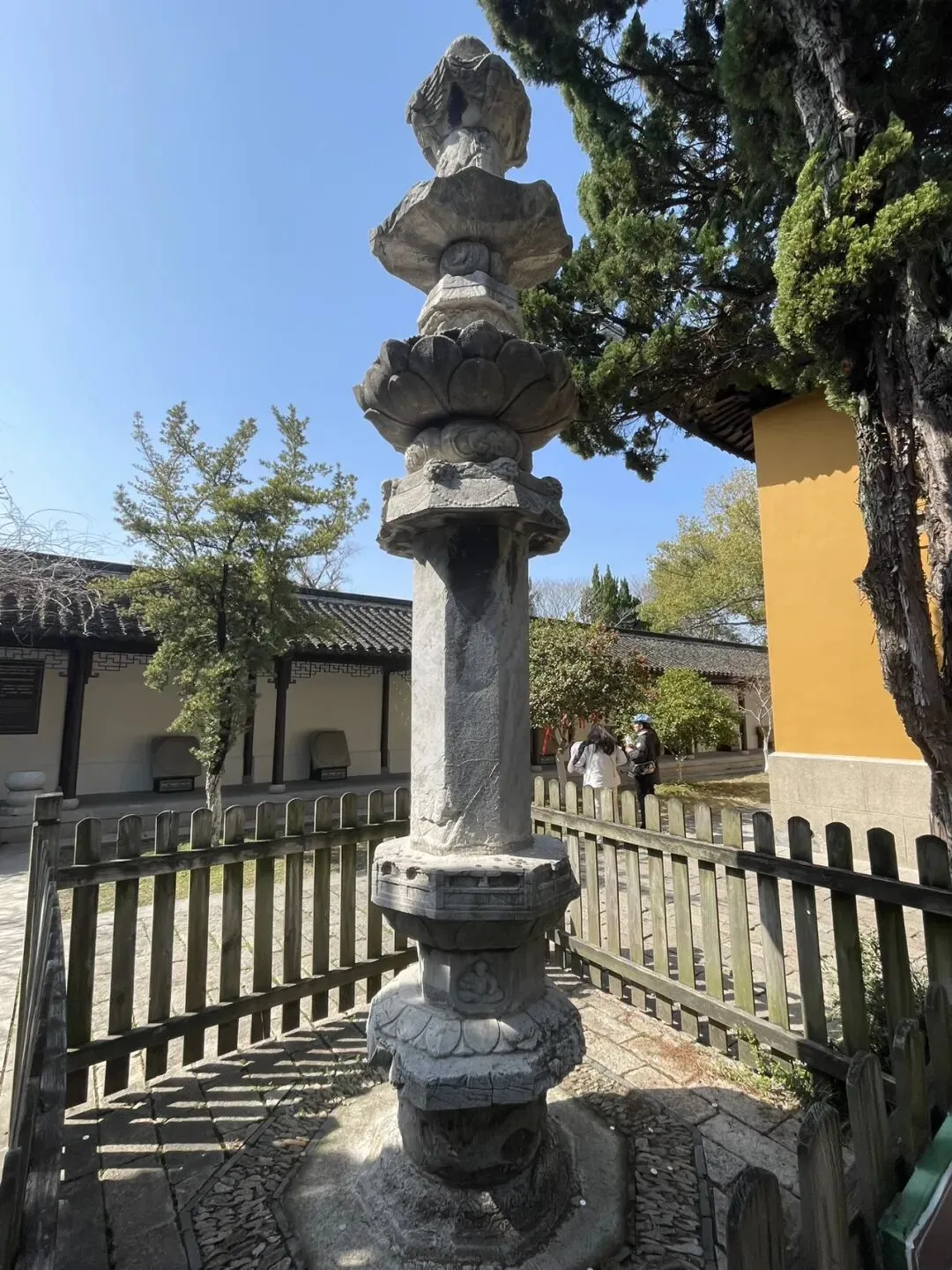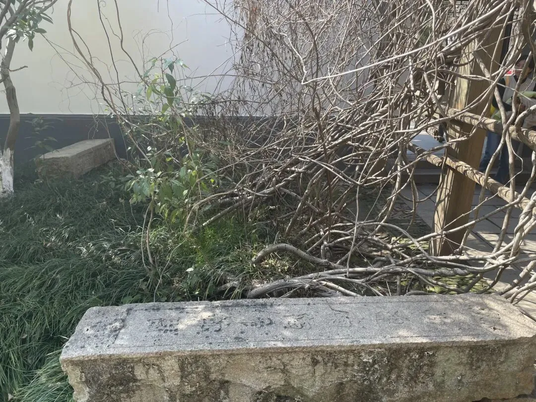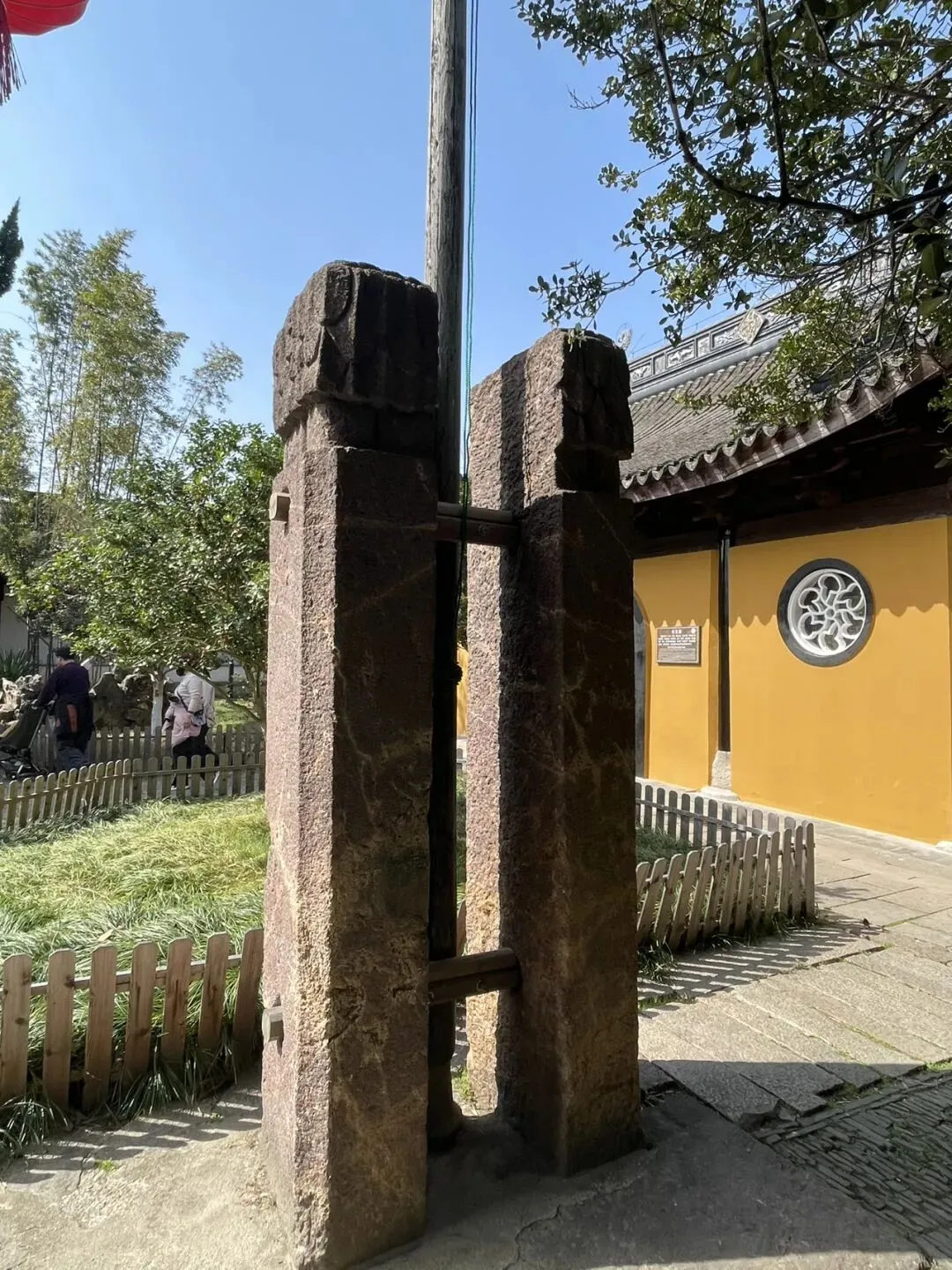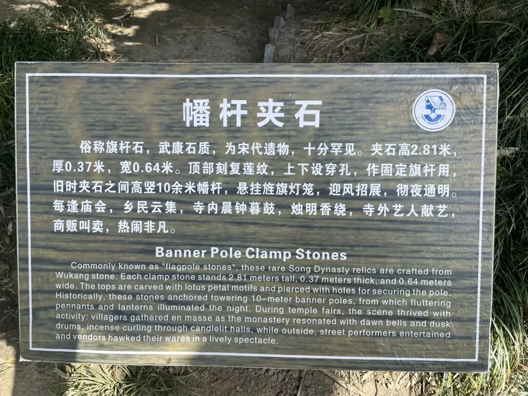 回首看庙门外的小巷,嗯,放到下一篇写吧,本文专写这座千年古刹。 第二,宋幡杆夹石。在百年枸杞的右前方,由宋代大量使用的武康石制成,因武康石松,易开采。