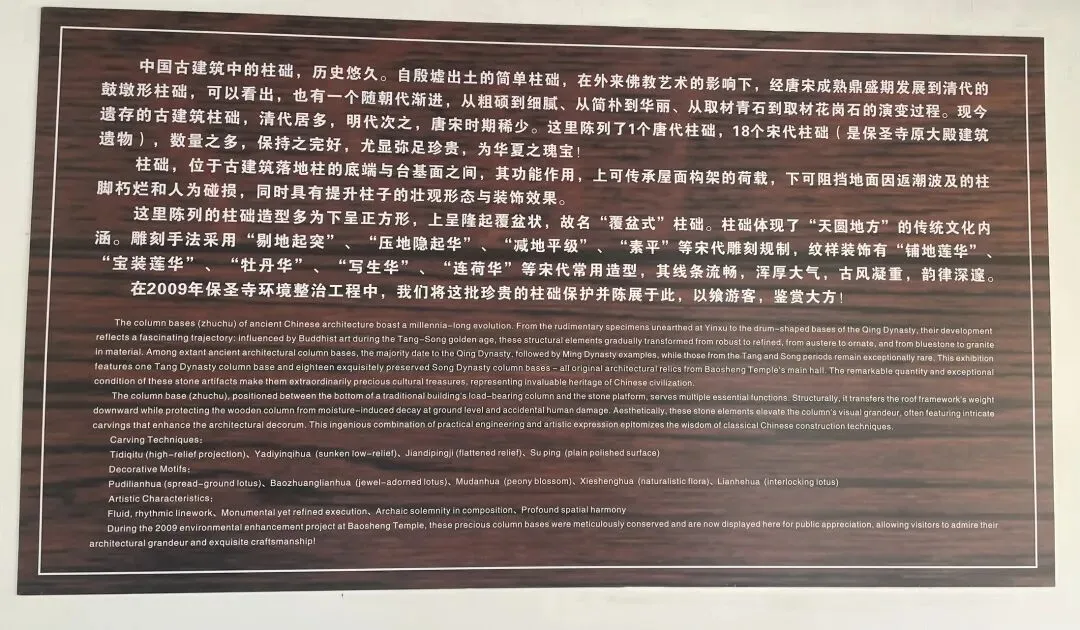 第八,古建柱础展示。绕古物馆一周的外廊展陈了大量唐宋的古建筑柱础,我仅摘了几个供大家欣赏。关于古建筑梁柱檩椽的基本构造可以看我的另一篇文章:国庆南京出发自驾,冷门景点之与故宫比肩的宏大古建筑群拥有多项国内唯一。