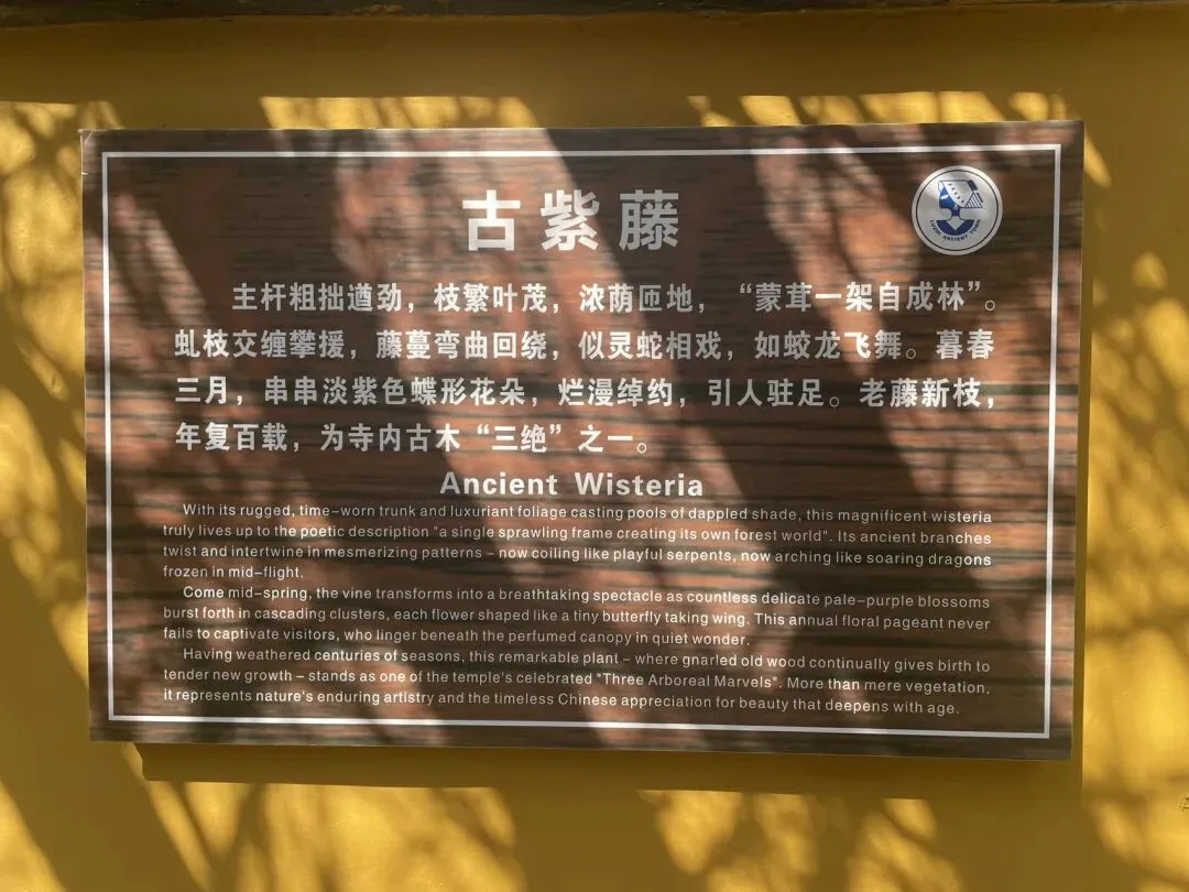 进入叶圣陶纪念馆所在的巨大院落会经过古紫藤长廊,这也是寺内“古木三绝”之一,暮春时节淡紫色的花朵如瀑布般垂下,该是多么惊艳。