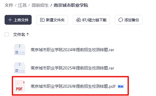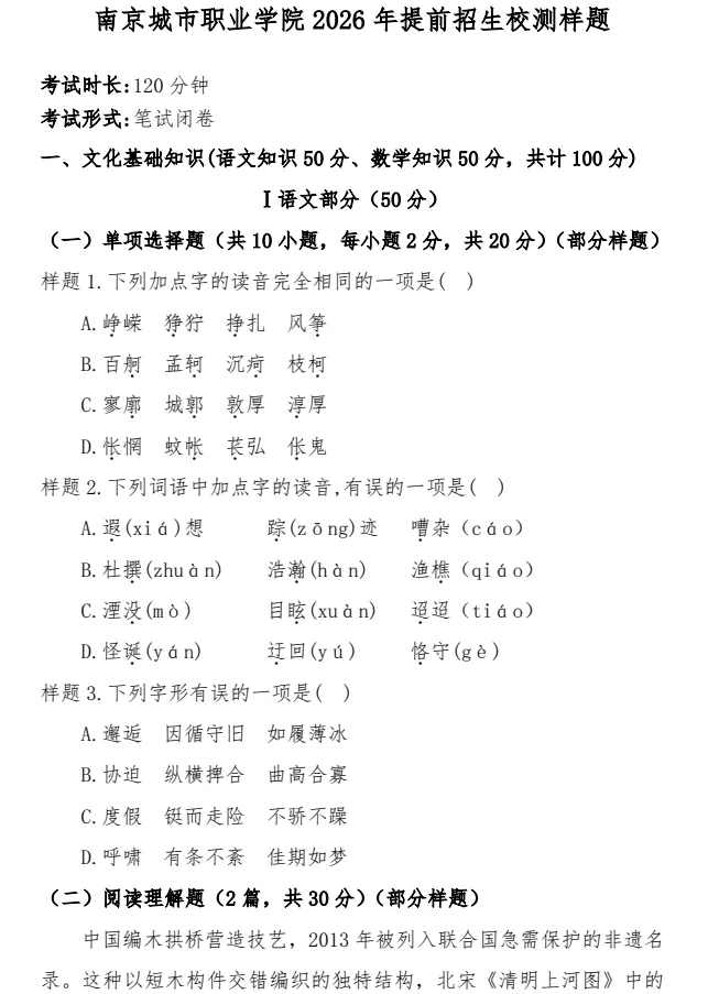 同学们大家好,今天给大家整理的资料是南京城市职业学院2026年提前招生校测样题,需要的同学可自行下载。【