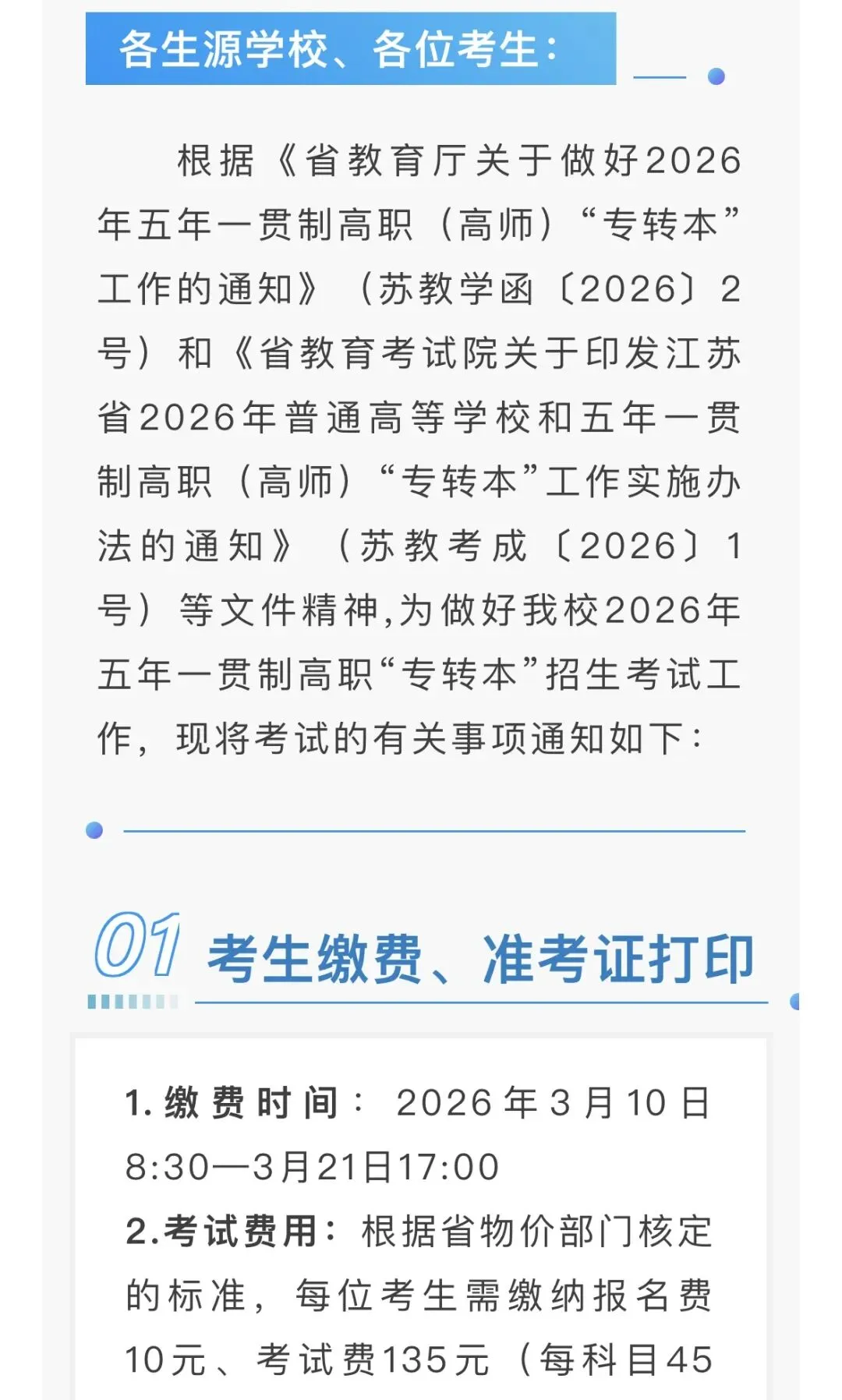 南京审计大学金审学院2026年五年一贯制“专转本”考试通知