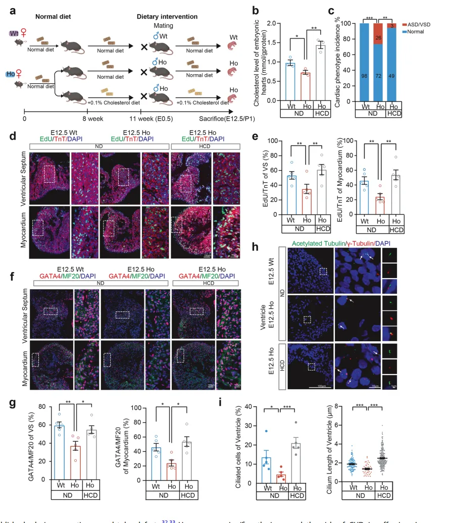 药物降脂致心缺陷:为验证人群发现的因果关系,研究人员采用两种叶酸代谢干扰药物处理怀孕母鼠:甲氨蝶呤(抑制二氢叶酸还原酶)和磺胺嘧啶(抑制肠道菌群叶酸合成)【图2A】。