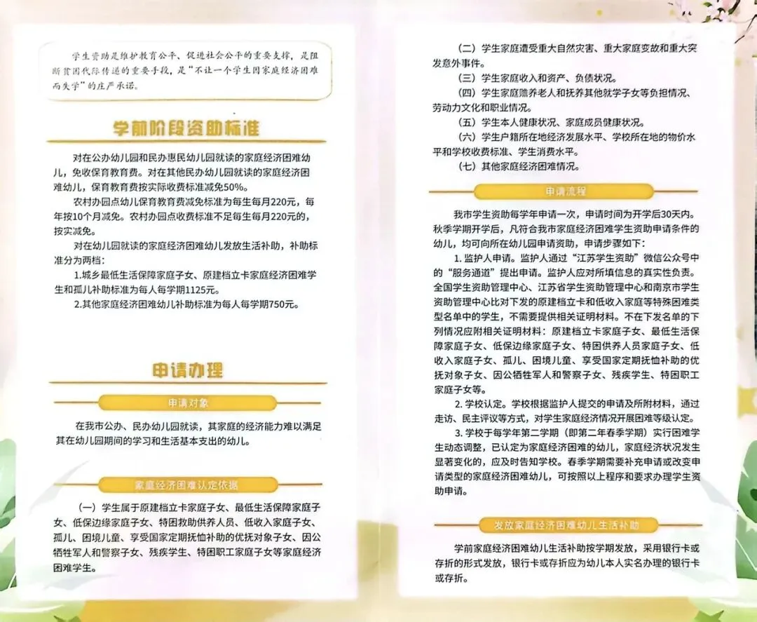 3、学校于每学年第二学期(即第二年春季学期)实行困难学生动态调整,已认定为家庭经济困难的幼儿,当家庭经济状况发生显著变化的,应及时告知学校。春季学期需要新申请的幼儿或改变申请类型的家庭经济困难幼儿可按照以上程序和要求,提供相关证明材料,办理学生资助申请。