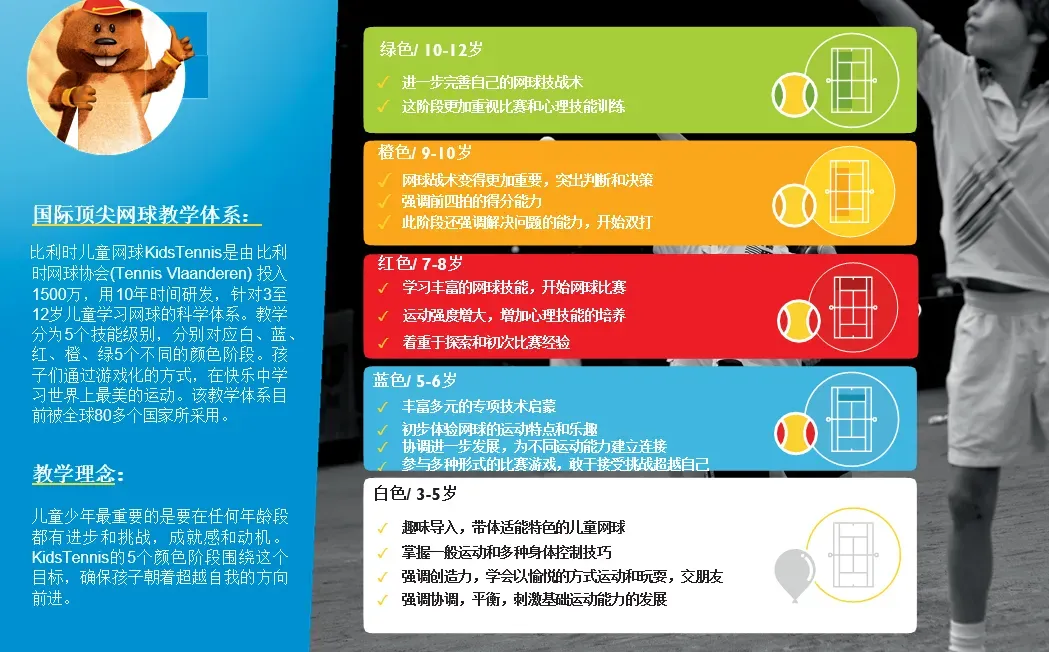 学习内容:学习网球提升教学方法:学习核心战术概念及相关训练方法,包括:进攻,防守和相持三大战术意图的教学方法,掌握能实现进攻,防守和相持战术目的的技术手段,包括:五种正手,三种放小球和三种截击进攻技技术,三种发球,削球,挑高球,月亮球经典防守技战术,掌握三种现代发球和接发球技术。确保发球和截击的成功率和稳定性继续提高,比赛能力提升。
