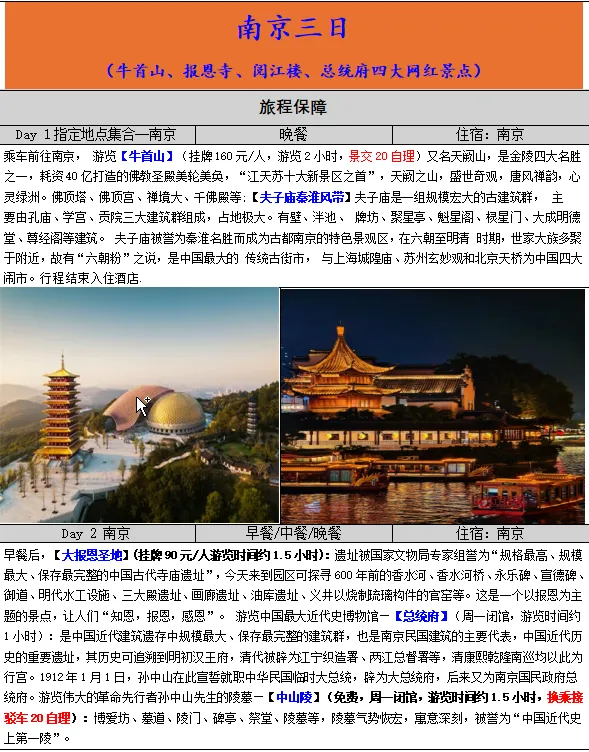 南京一地三日游 路线
