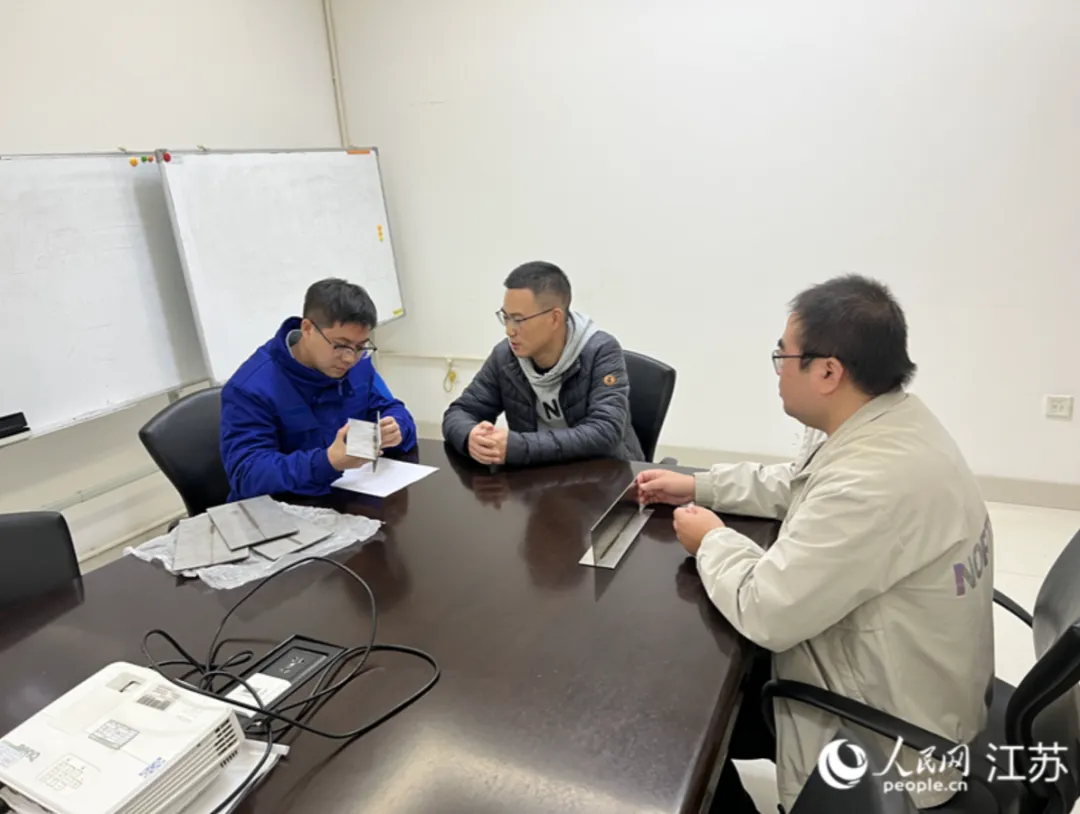 张涛(中)和企业沟通技术细节。人民网 江楠摄