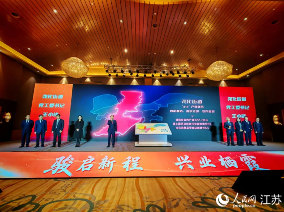 栖霞区“新春第一会”上,栖霞高新区、各平台管办、各街道党工委书记轮番登台,为区域发展“站台吆喝”。人民网 江楠摄