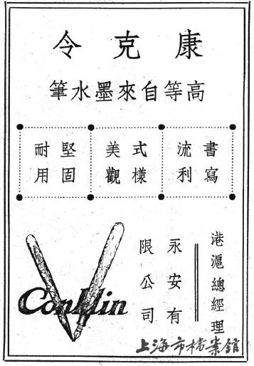 由永安公司代理的康克令钢笔广告(上海市档案馆藏)